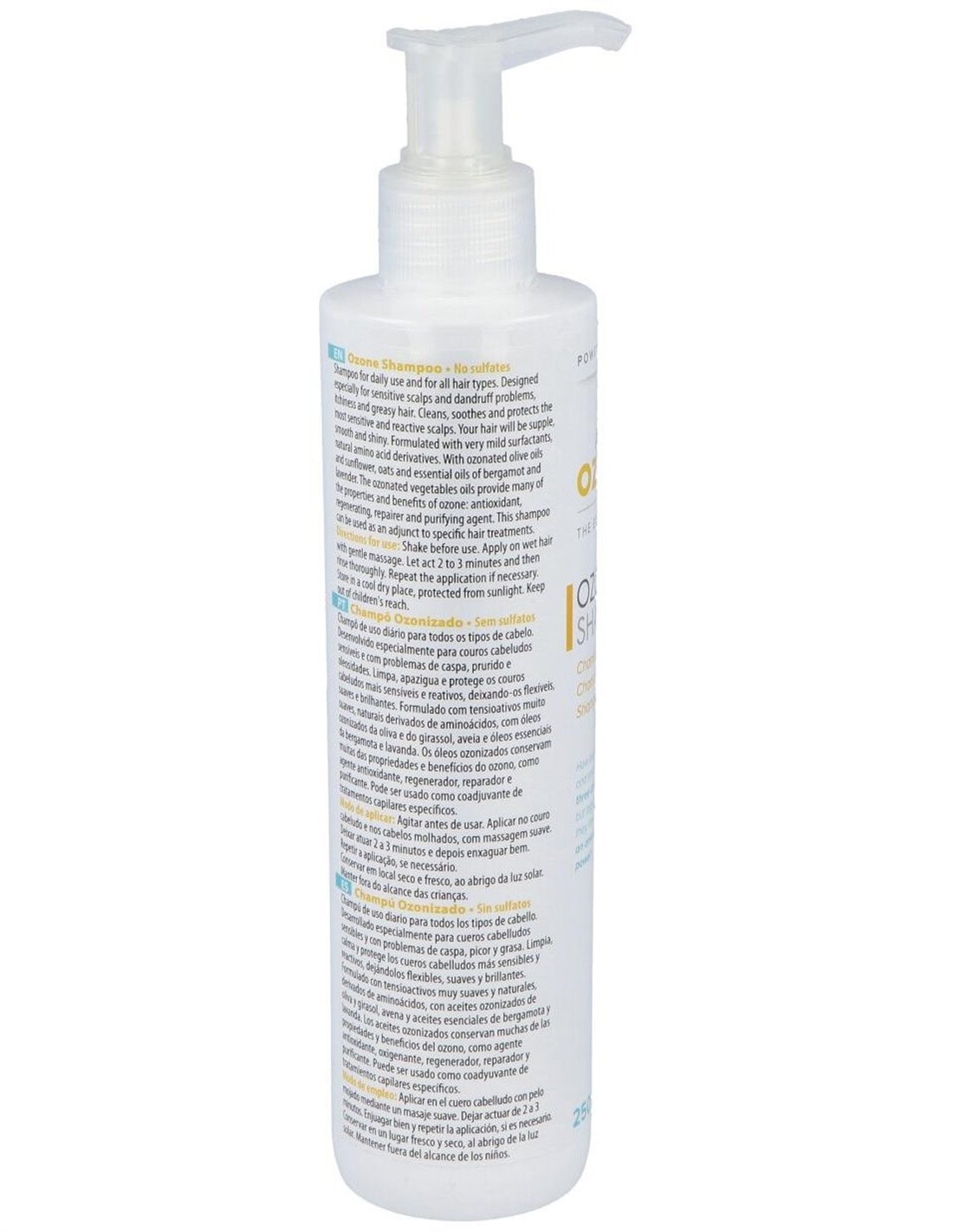 Es un champú de uso diario con ozono ideal para proteger, cuidar y calmar hasta el cuero cabelludo más sensible.