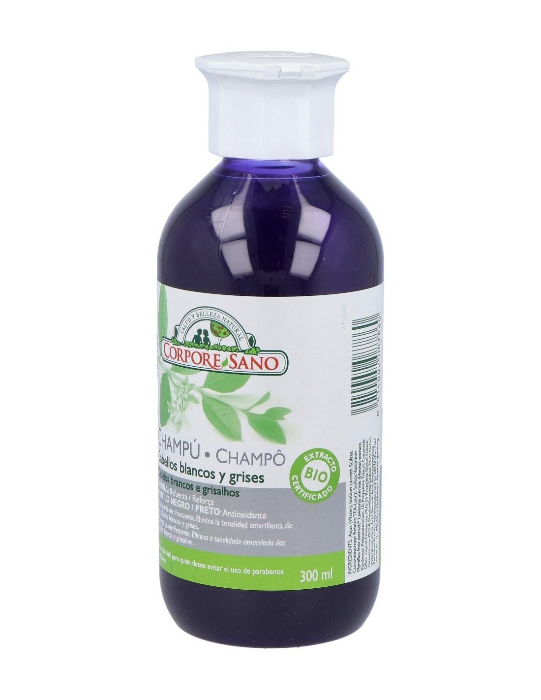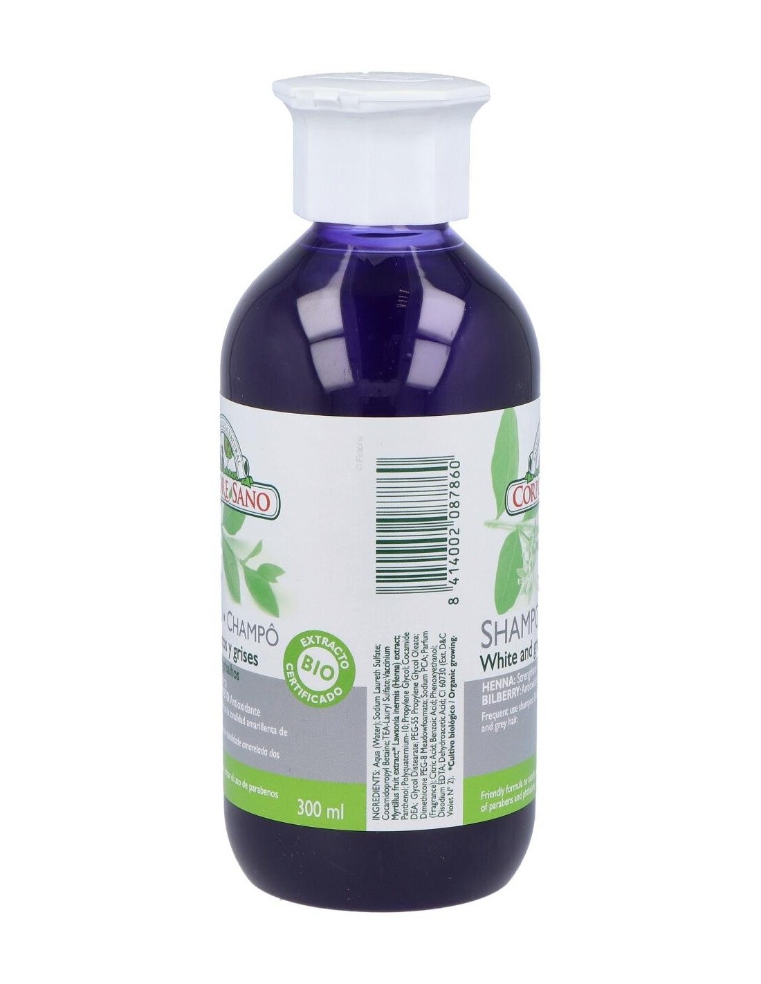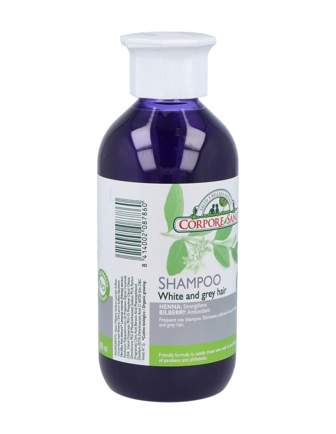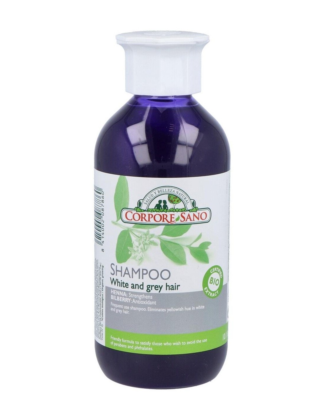 Corpore Sano champú henna cabellos blancos consigue reavivar y proteger el color del cabello, especialmente en los casos en los que estos son grises y blancos. Reduce por completo el color amarillento de tu pelo, gracias a sus extractos de arándanos y limnanthes alba.