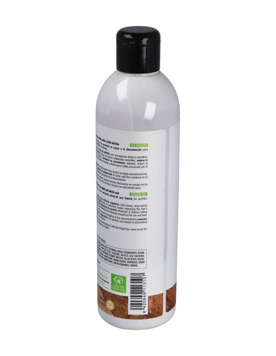 Champú caspa que ayuda elimina las capas de la piel que han proliferado excesivamente y de manera irregular transformándose en la caspa. El champú se puede utilizar en los cabellos con caspa seca y caspa grasa. Remineraliza y nutre los tejidos. Absorbe las toxinas y las grasas. Ayuda a elimina las capas superficiales de la piel desestructuradas debido a un crecimiento acelerado, y que son las responsables de la descamación (caspa). Arrastra las bacterias responsables de la inflamación y el picor eliminando los ácidos grasos irritantes. Aumenta la oxigenación del cuero cabelludo estimulando la dilatación de los vasos sanguíneos. Aporta sustancias que nutren el cuero cabelludo con lo que se consigue un cabello sano y brillante.