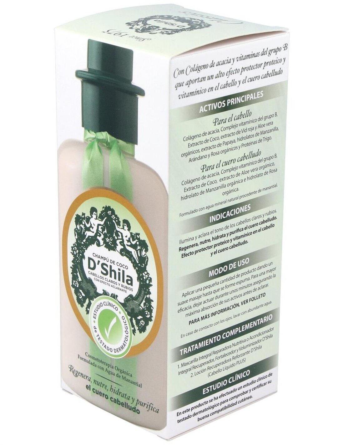 Champú proteico de coco nutritivo y revitalizante que ayuda a dejar el pelo sedoso y brillante. Contribuye a devolver el color natural a los cabellos rubios y aviva la luminosidad de los castaños claros y apagados.