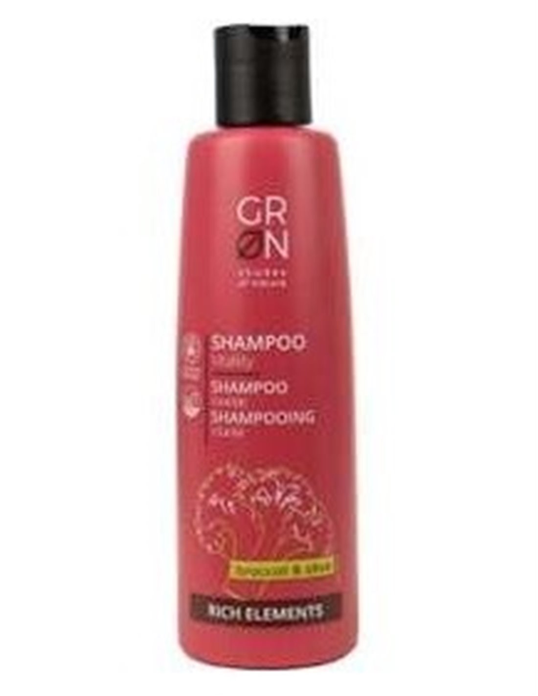 Champú que aporta vitalidad indicado para cabello estresado, contiene aceite de semilla de brocoli que suaviza sin apelmazar y el aceite de oliva hidrata el cabello, la granada y la melisa revitalizan el cuero cabelludo. Fórmula vegana. Producto certificado Cosmos Organic.