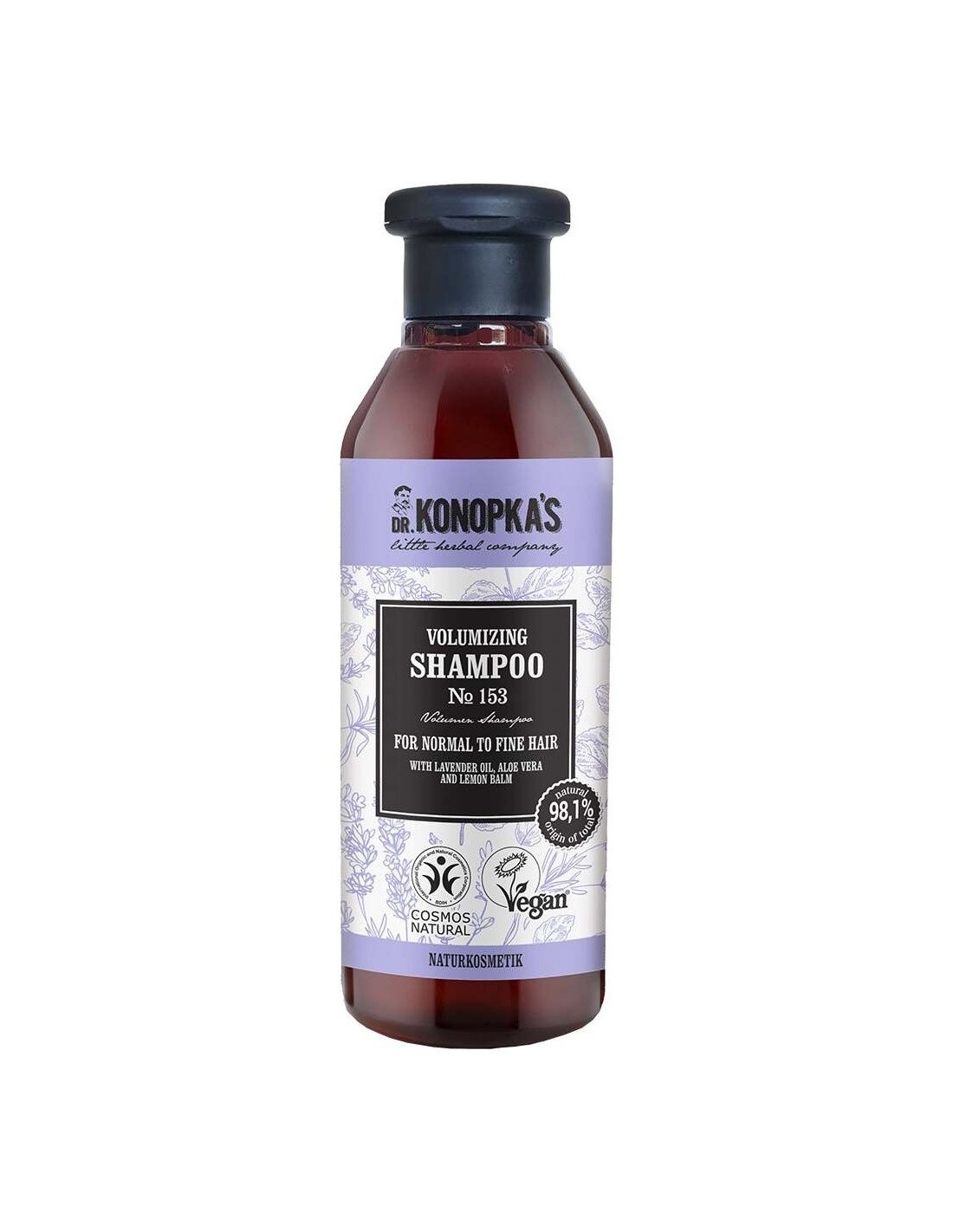 DR. KONOPKA´SEste champú está formulado para otorgar un volumen duradero al cabello. El aloe vera, aceite de lavanda y bálsamo de limón orgánicos dejan el cabello más grueso sin que pese más, lo mantienen fresco más tiempo y lo dejan fuerte y brillante. Certificado BDIH Cosmos Natural y Vegan.