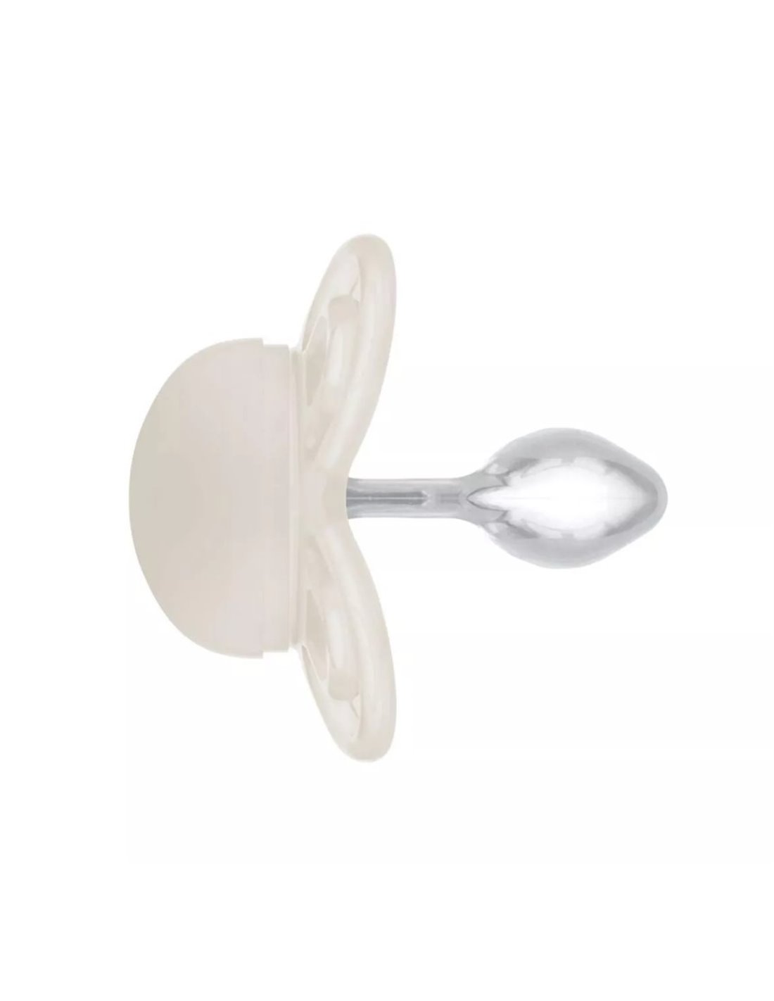 La silicona médica es un producto químico de color blanco transparente. Es un material duradero, ya que no absorbe olores ni sabores. Su tamaño no varía con el uso, aunque sí podría adoptar colores de los alimentos con los que entre en contacto. Es menos resistente a los mordiscos y tirones del bebé luego se suele recomendar para recién nacidos, de 0 a 6 meses.