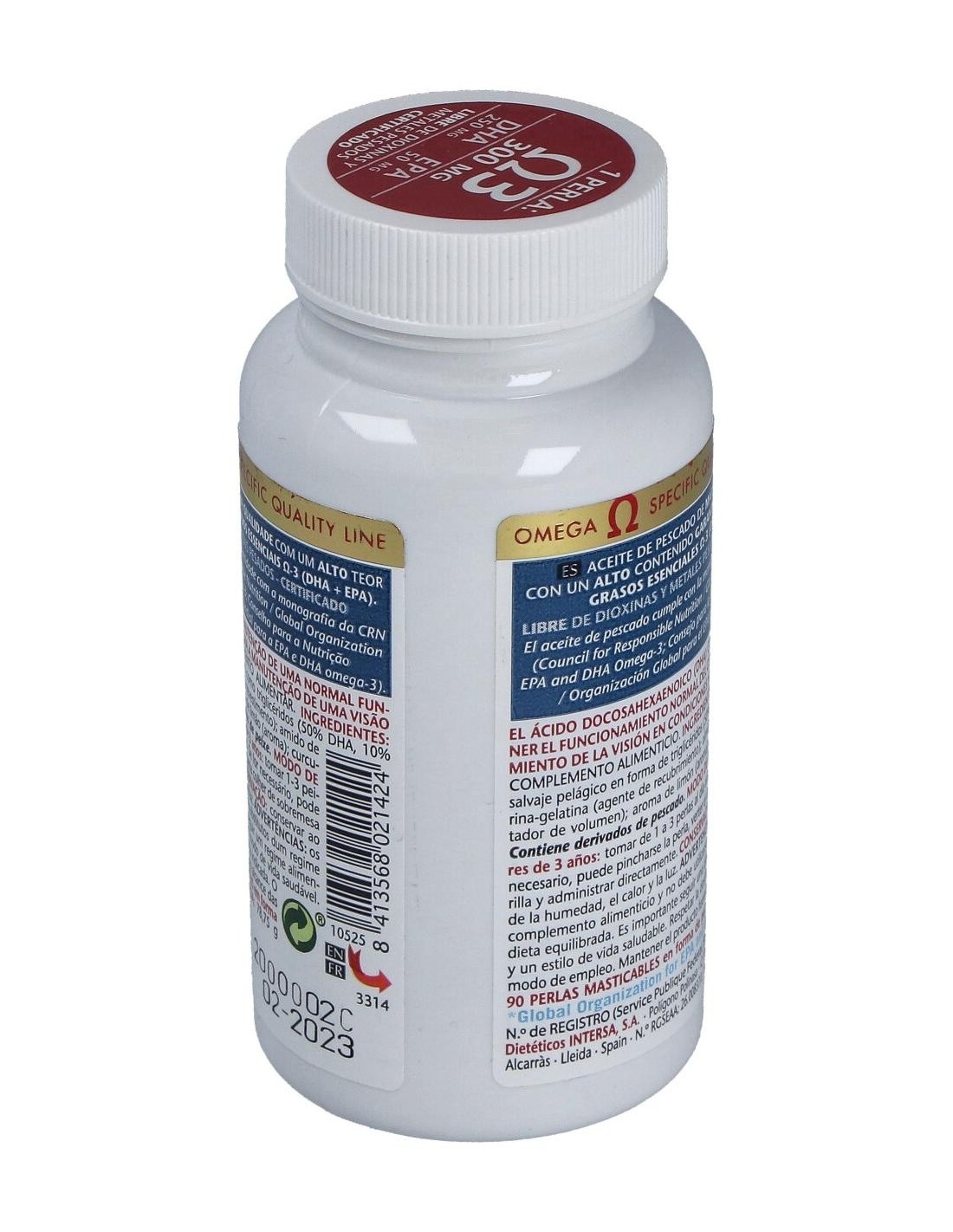 ACEITE DE PESCADO SALVAJE PELÁGICO (50% DHA, 10% EPA).EXCIPIENTES: PERLAS DE GELATINA GLICERINA (ENVOLTURA DE LA PERLA): ALMIDÓN DE MAIZ (AGENTE DE CARGA): AROMA DE LIMÓN (AROMA): CURCUMINA (COLORANTE).