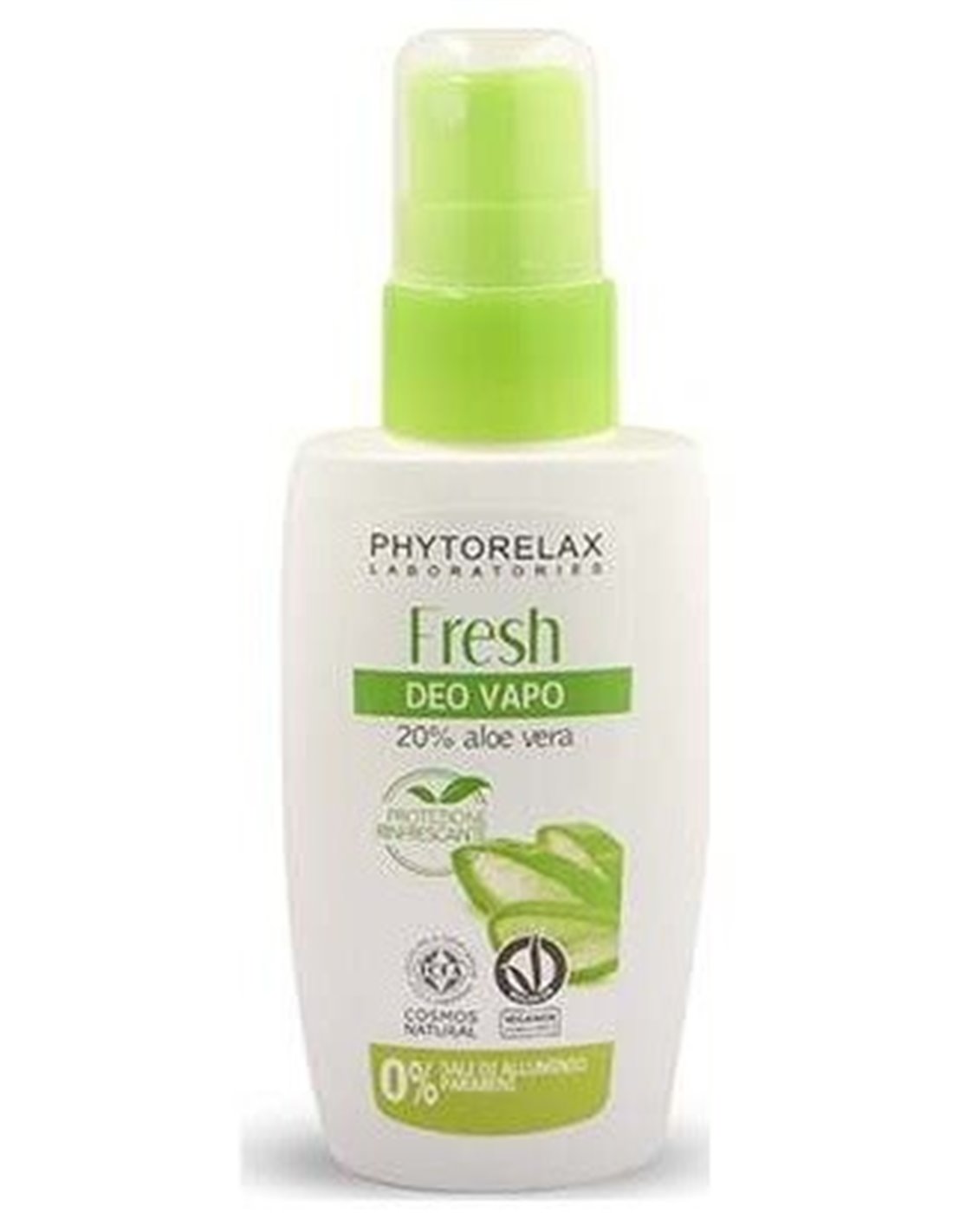 Ideal para una protección con frescor intenso:\ 0% gas\ 0% sal de aluminio\ Con alcohol, larga duración\ Respeta el proceso natural fisiológico de la sudoración\ Con un 20% de aloe vera que aporta hidratación y frescor.\ Desodorante totalmente certificado por Cosmos Natural, Vegan Ok y Parabens Free.