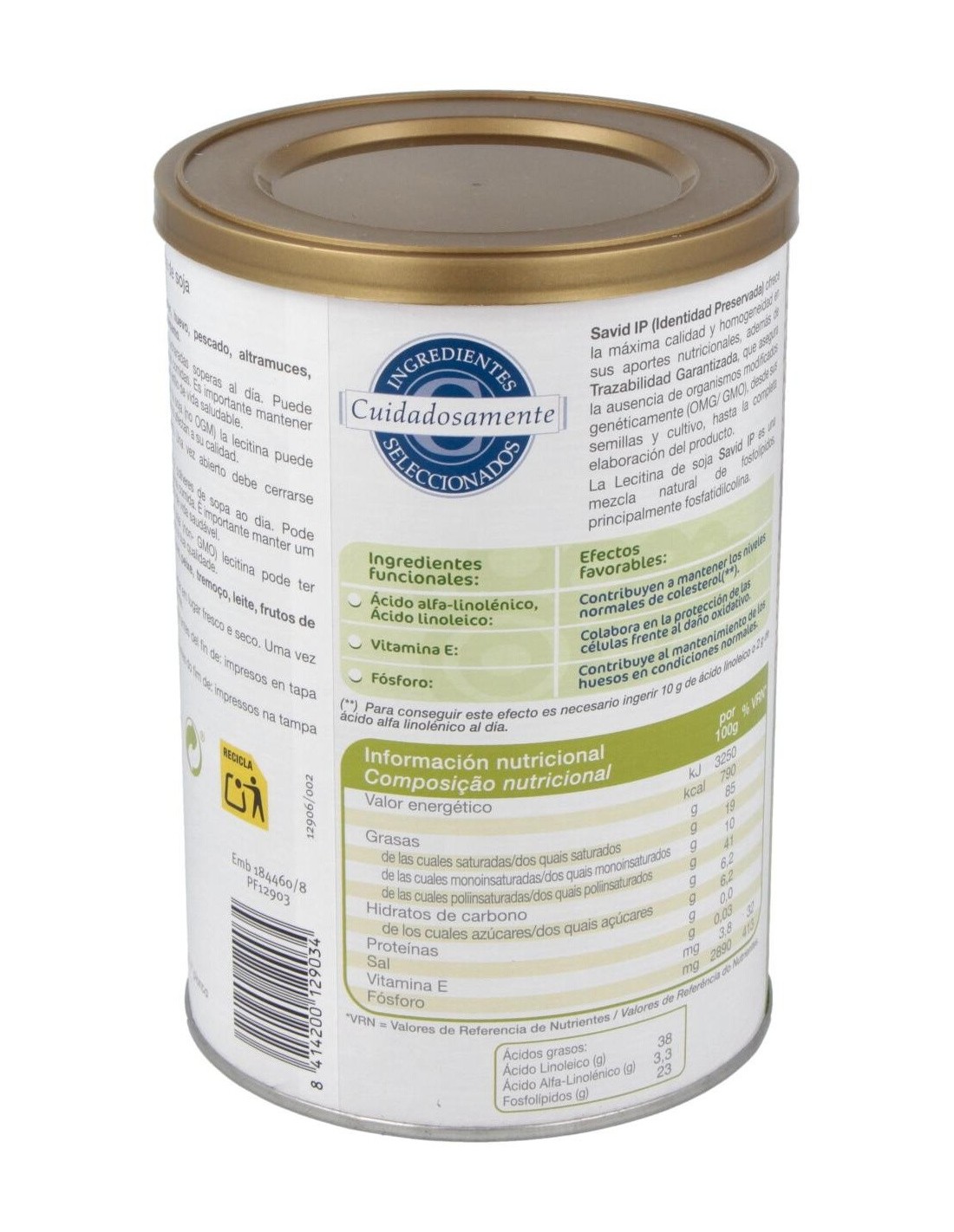 Dietisa Savid Ip Lecitina De Soja 400g es un complemento alimenticio a base de lecitina de soja que contribuye a mantener niveles normales de colesterol. Savid IP (Identidad preservada) es una mezcla natural de fosfolípidos que ofrece la máxima calidad y homogeneidad, además de trazabilidad garantizada, pues este producto asegura que no contiene organismos modificados genéticamente (OMG/GMO) de ningún tipo y en todos los procesos, desde el cultivo y las semillas hasta la completa elaboración del producto.