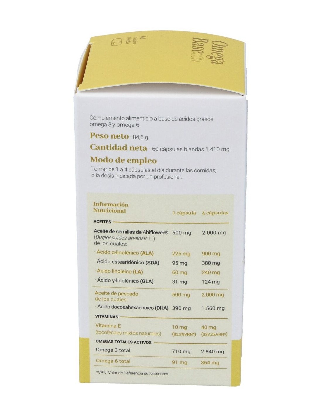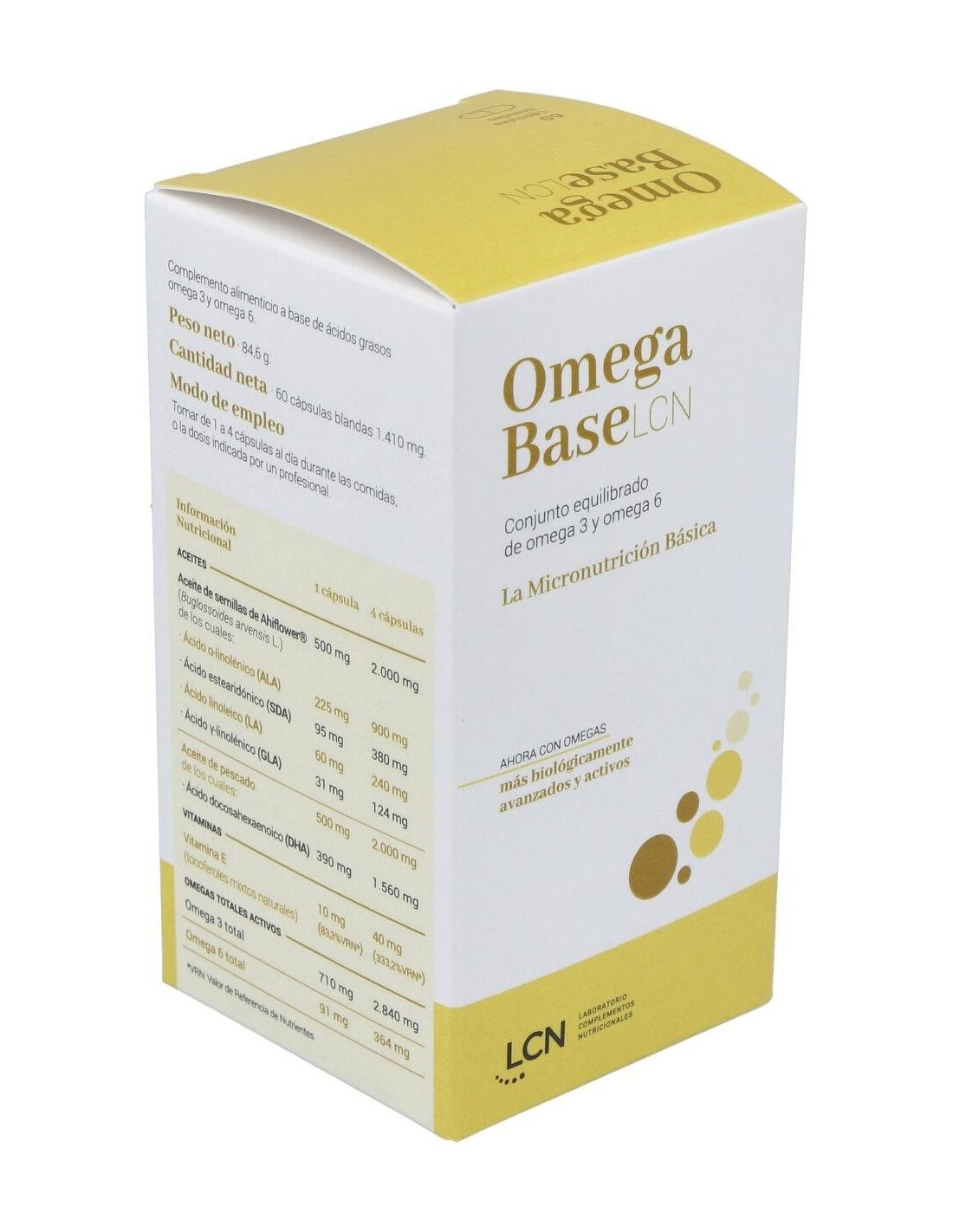 Cn Omega Base Lcn 60 Cápsulas es un complemento alimenticio formulado a base de ácidos grasos omega 3 y omega 6, aceite de chía virgen, aceite de pescado, aceite de onagra vírgen y tocoferoles mixtos naturales como fuente de vitamina E.