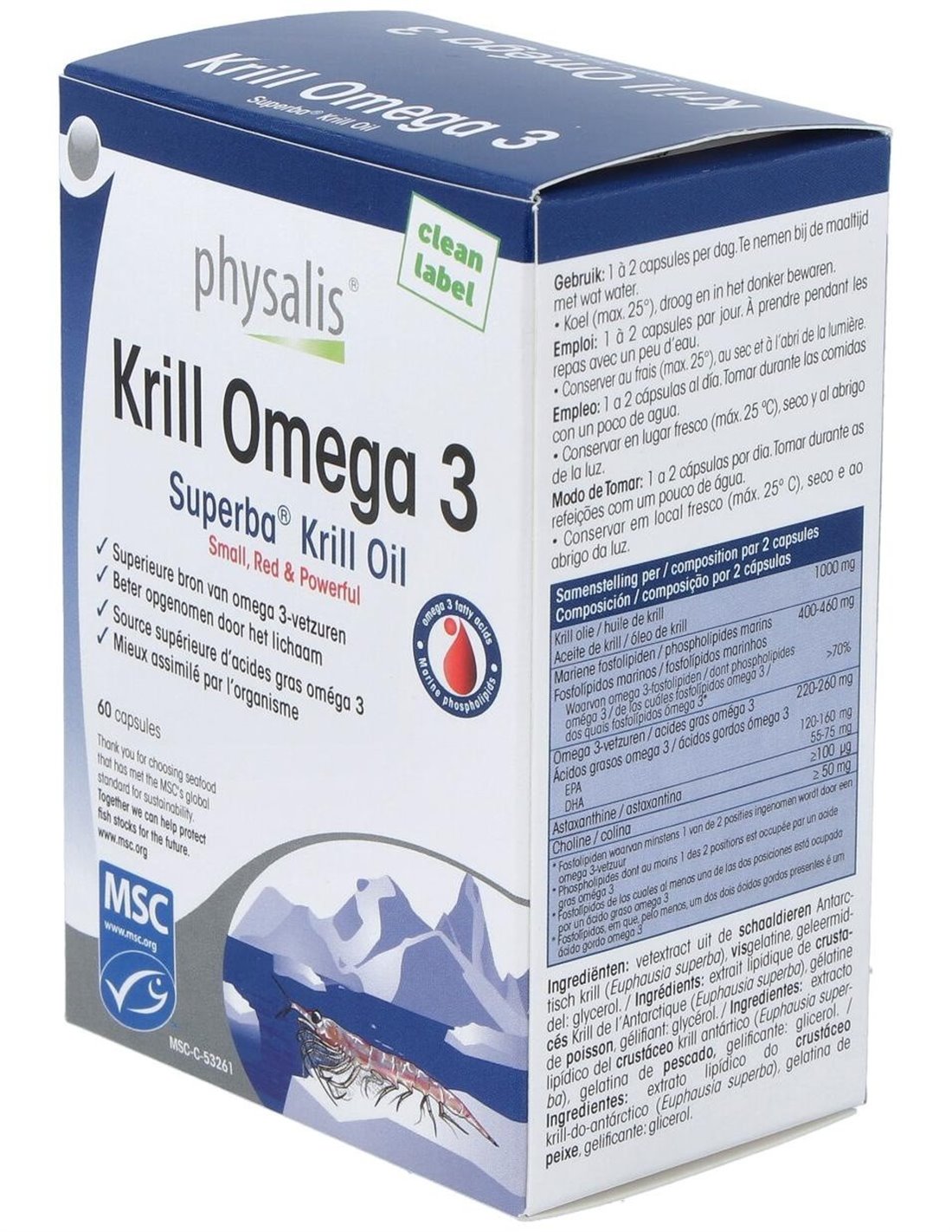 Complemento alimenticio a base de krill. Estas pequeñas gambas de aguas frías, son una especie de zooplancton marino que ayuda a mejorar los lípidos en sangre. Contribuyendo a mejorar la salud del corazón, y del sistema nervioso. Su alto contenido en Omega-3 ayuda a mejorar la concentración y la memoria.