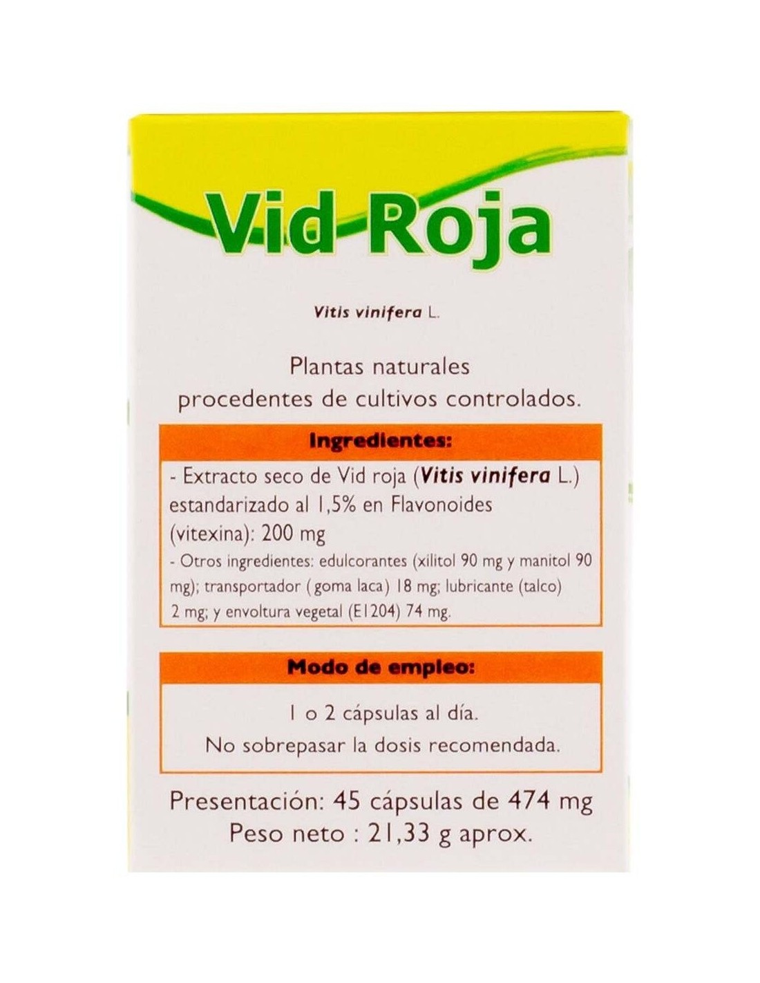 Extracto estandarizado de vid roja (Vitis vinifera) ... 200 mg.