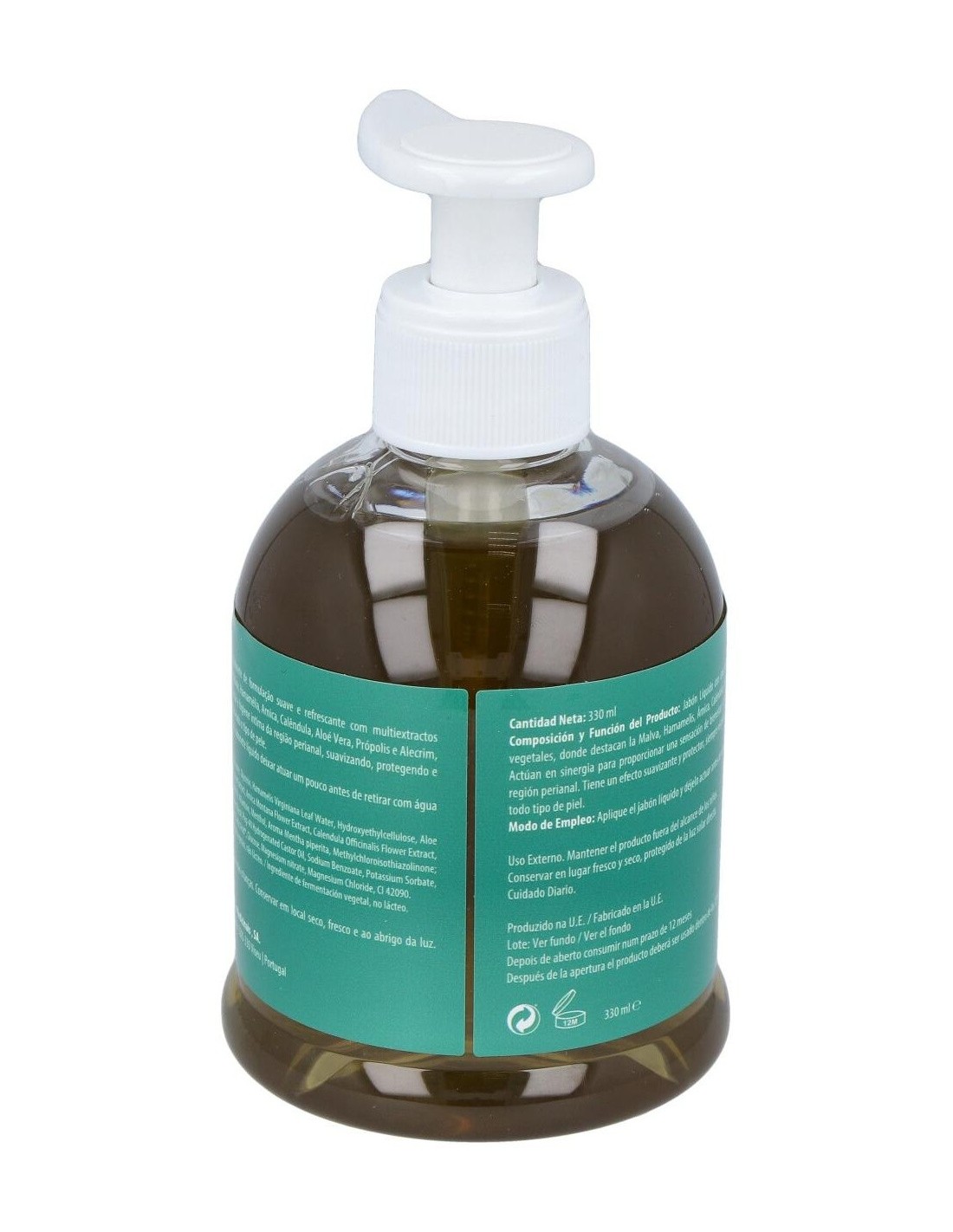 Jabón con multiextractos vegetales entre los cuales están la Malva, Hamamelis, Árnica, Caléndula, Aloe vera, Própolis y Romero.
