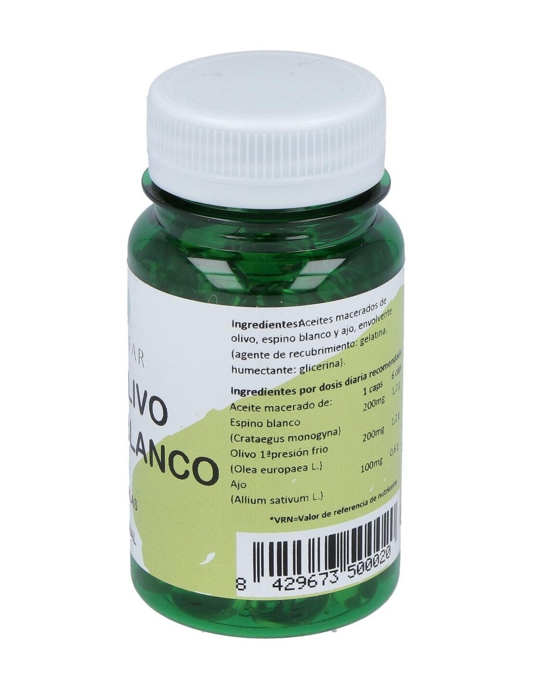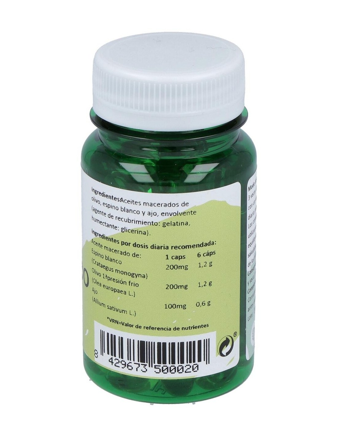 ACEITE MACERADO DE OLIVO, ESPINO BLANCO Y AJO, ENVOLVENTE (AGENTE DE RECUBRIMIENTO: GELATINA, HUMECTANTE: GLICERINA).