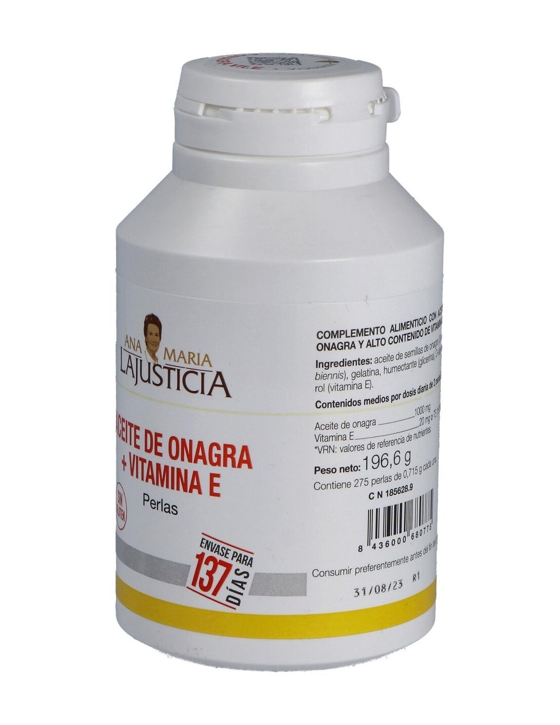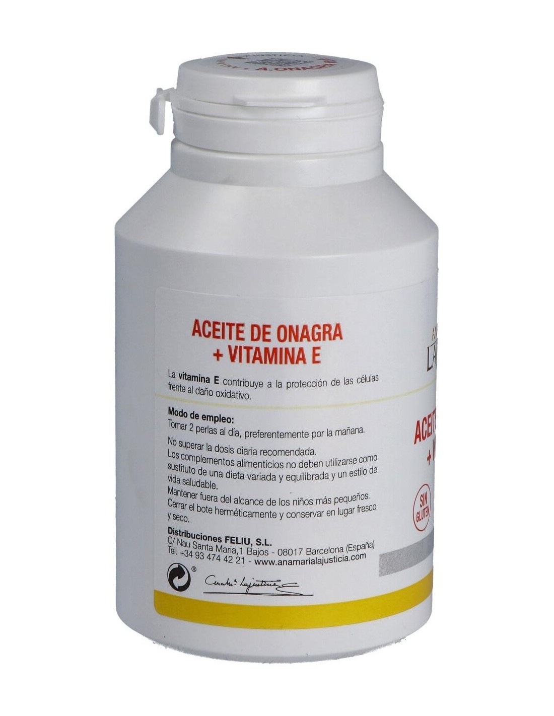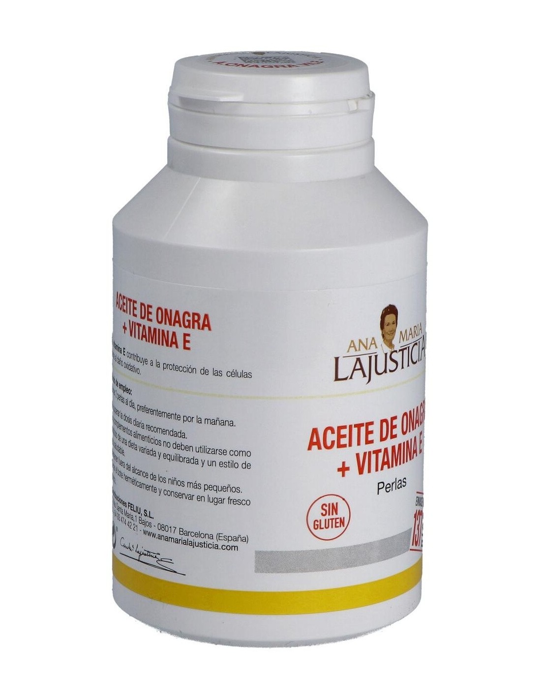 Ana Maria Lajusticia Aceite De Onagra + Vitamina E 275 Perlas es un complemento alimenticio rico en vitamina E y ácidos grasos poliinsaturados, con aceite de Onagra. La vitamina E colabora con la protección de las células frente al daño oxidativo.