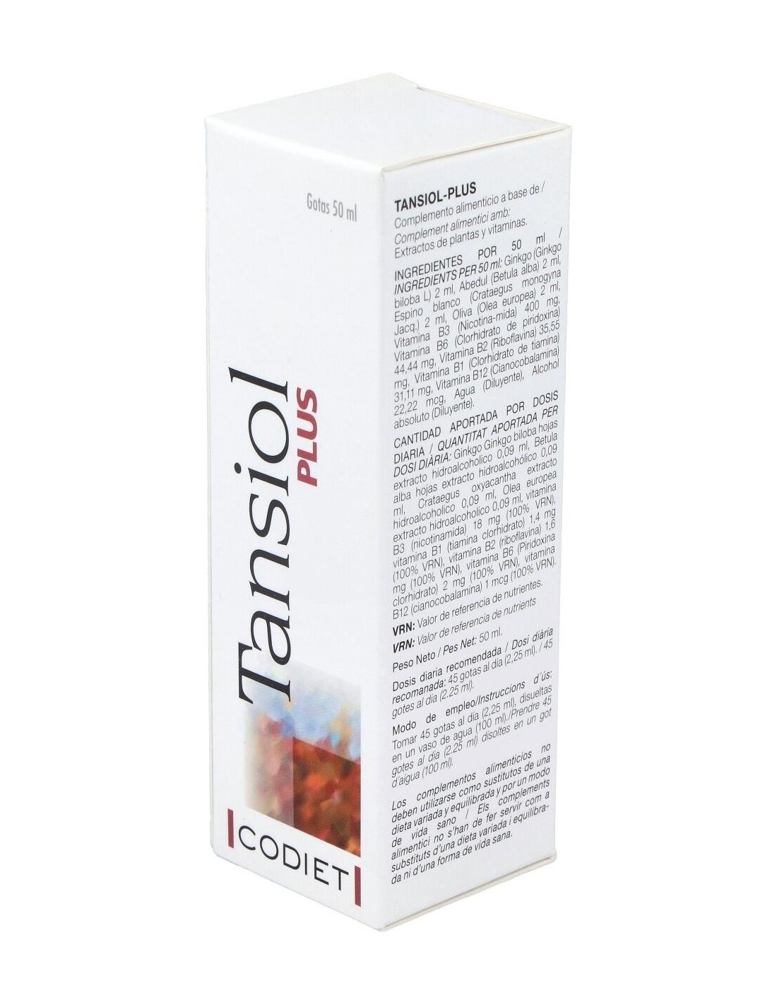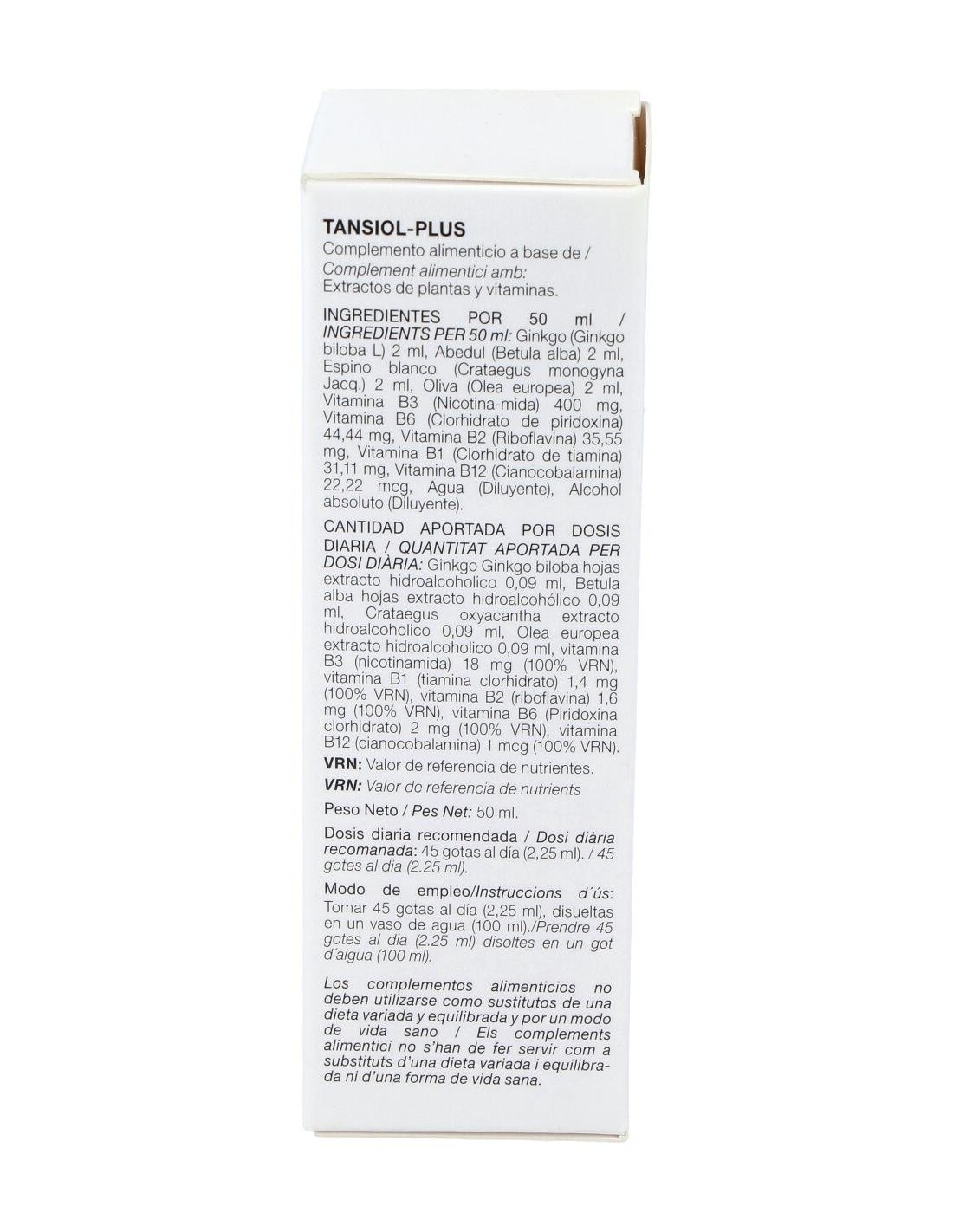 Ginkgo (Ginkgo biloba L), Abedul (Betula alba), Espino blanco (Crataegus monogyna Jacq.), Oliva (Olea europea), Vitamina B3 (Nicotinamida), Vitamina B6 (Clorhidrato de piridoxina), Vitamina B2 (Riboflavina), Vitamina B1 (Clorhidrato de tiamina), Vitamina B12 (Cianocobalamina), Agua (Diluyente), Alcohol absoluto (Diluyente).