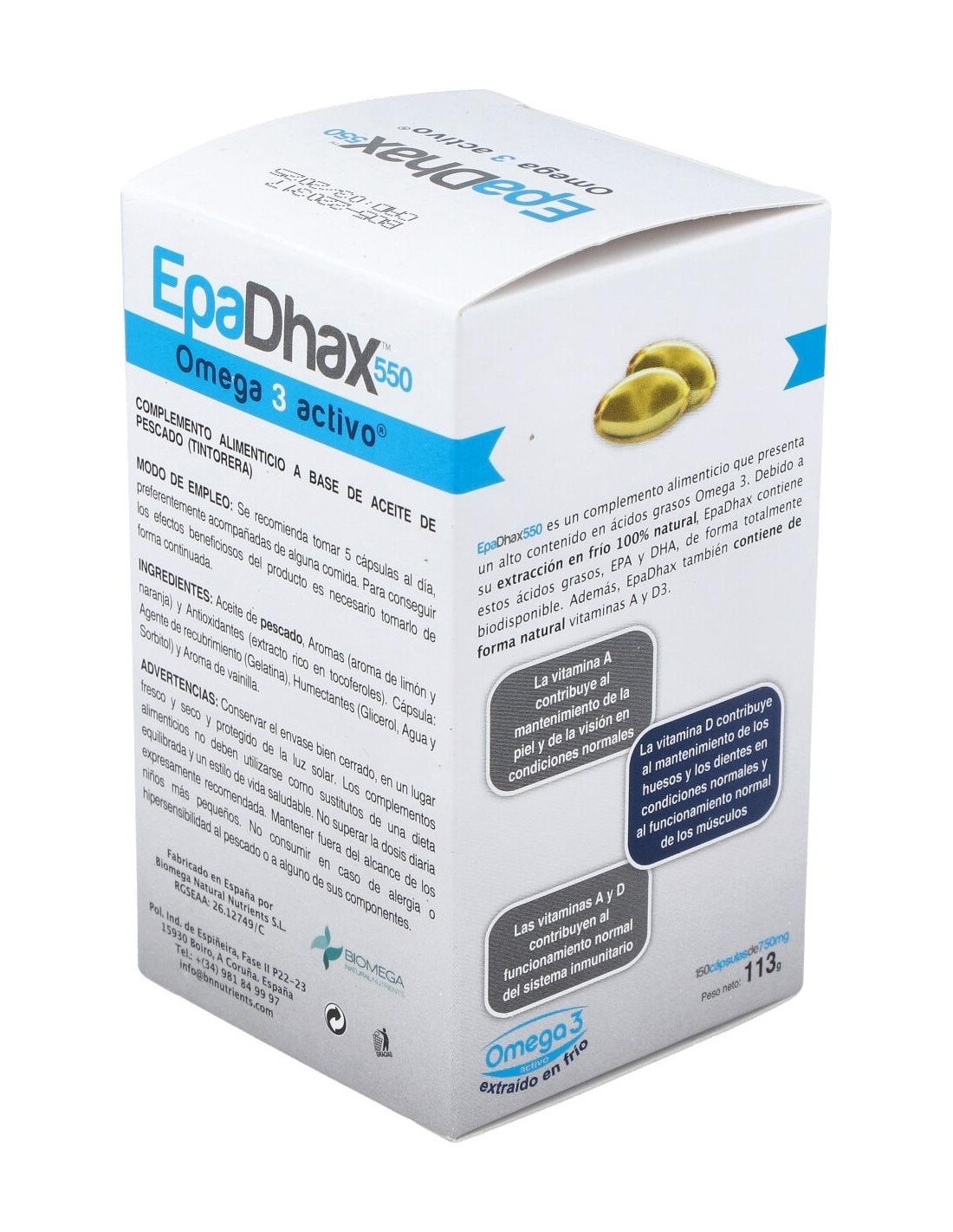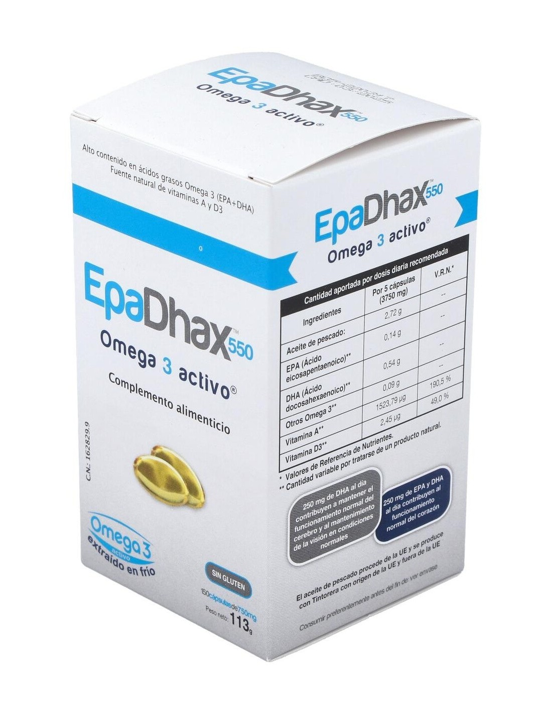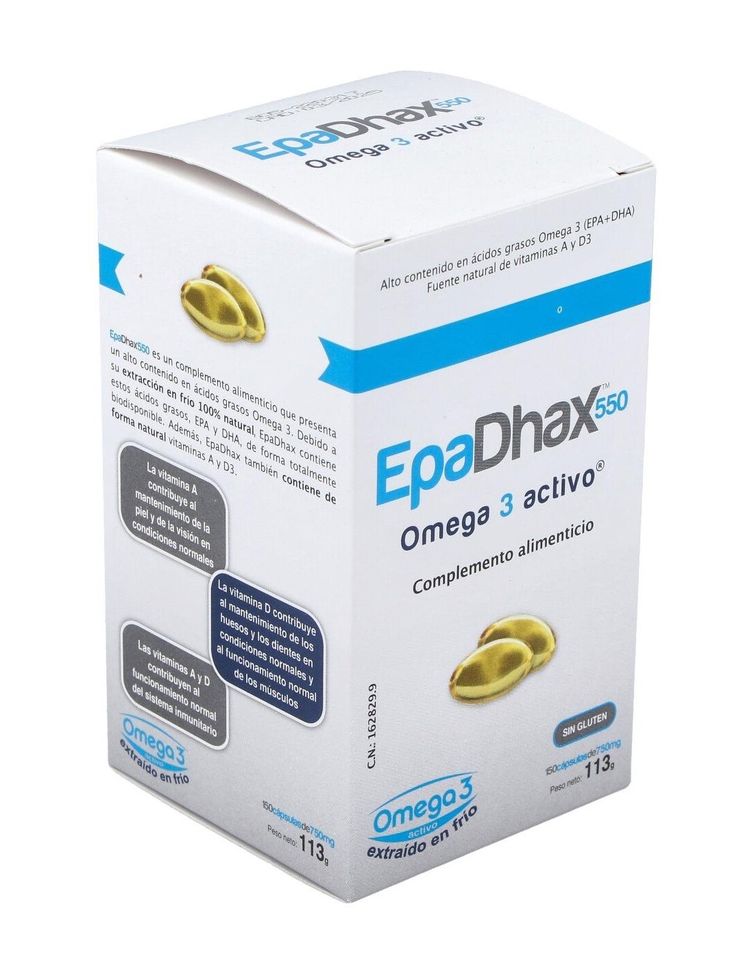 Complemento alimenticio que presenta una elevada concentración de ácidos grasos Omega 3. Debido a su extracción en frío 100% natural, EpaDhax contiene estos ácidos grasos, EPA y DHA, de forma totalmente biodisponible contribuyendo al funcionamiento normal del sistema cardiovascular. Además, EpaDhax también contiene de forma natural vitaminas A y D3. Unos niveles adecuados de DHA y vitamina A son claves para un correcto mantenimiento de la visión.