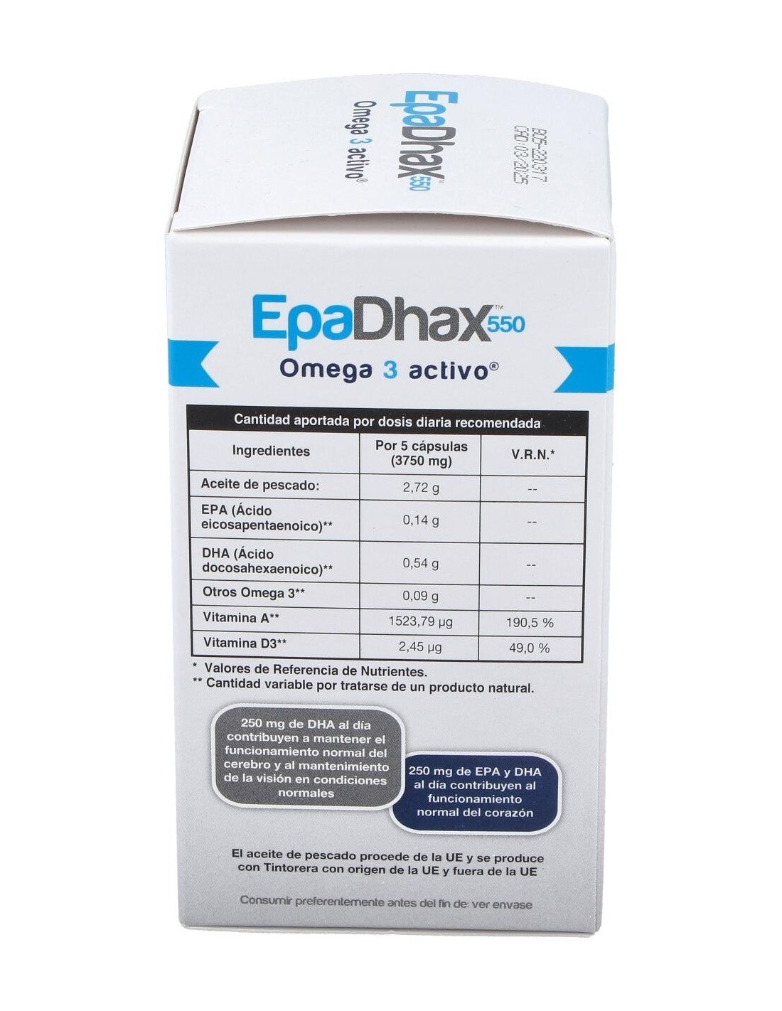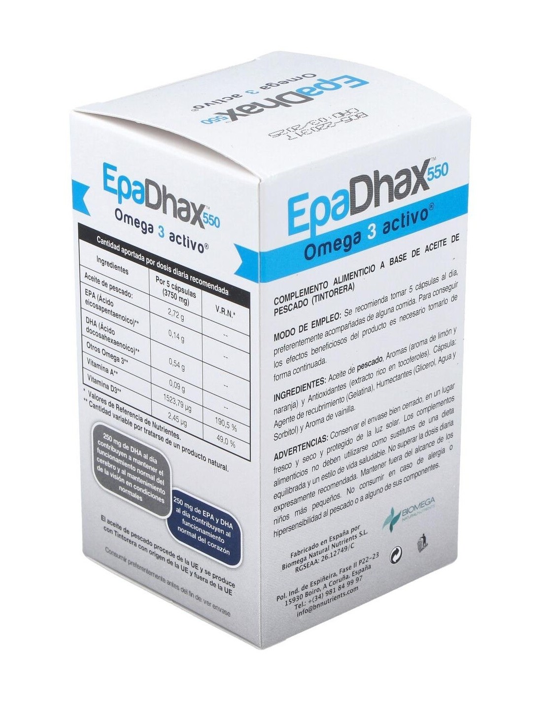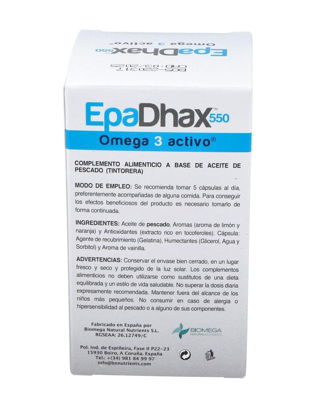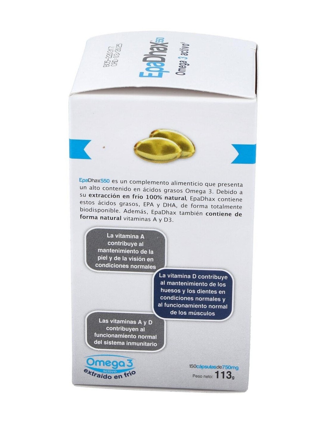 Complemento alimenticio que presenta una elevada concentración de ácidos grasos Omega 3. Debido a su extracción en frío 100% natural, EpaDhax contiene estos ácidos grasos, EPA y DHA, de forma totalmente biodisponible contribuyendo al funcionamiento normal del sistema cardiovascular. Además, EpaDhax también contiene de forma natural vitaminas A y D3. Unos niveles adecuados de DHA y vitamina A son claves para un correcto mantenimiento de la visión.