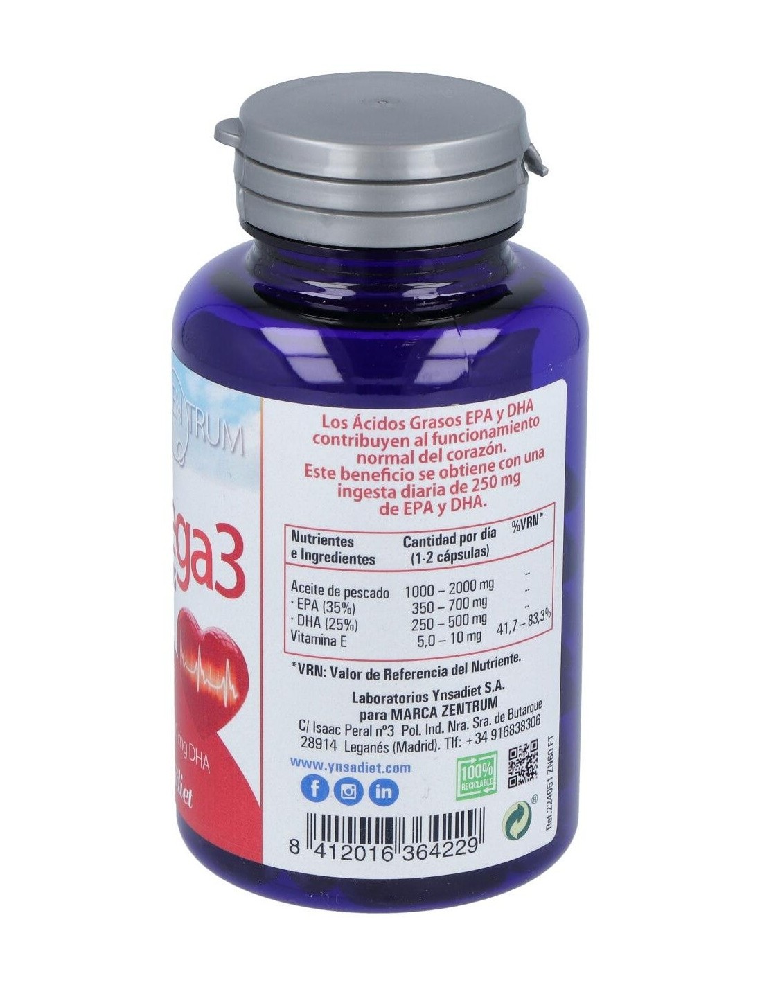Complemento alimenticio formulado a base de aceite de pescado rico en ácidos grasos omega 3. Producto rico en EPA y DHA. Contribuye a la normal función cardiovascular. El omega 3 tiene propiedades beneficiosas para el sistema ocular y cerebral. Indicado para adultos.