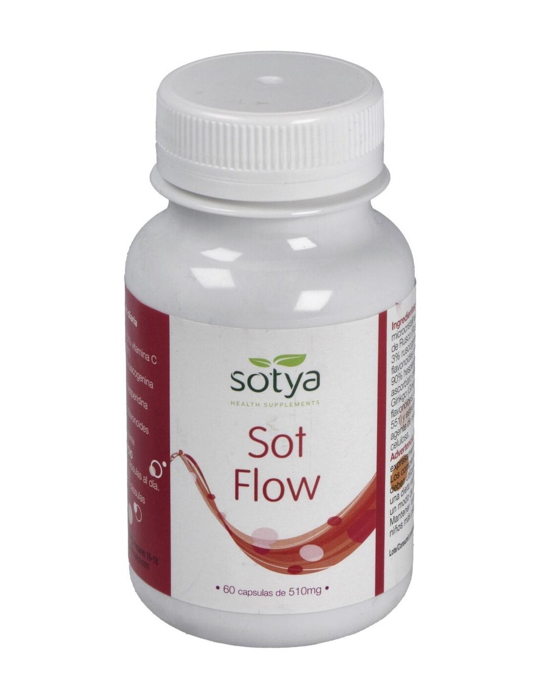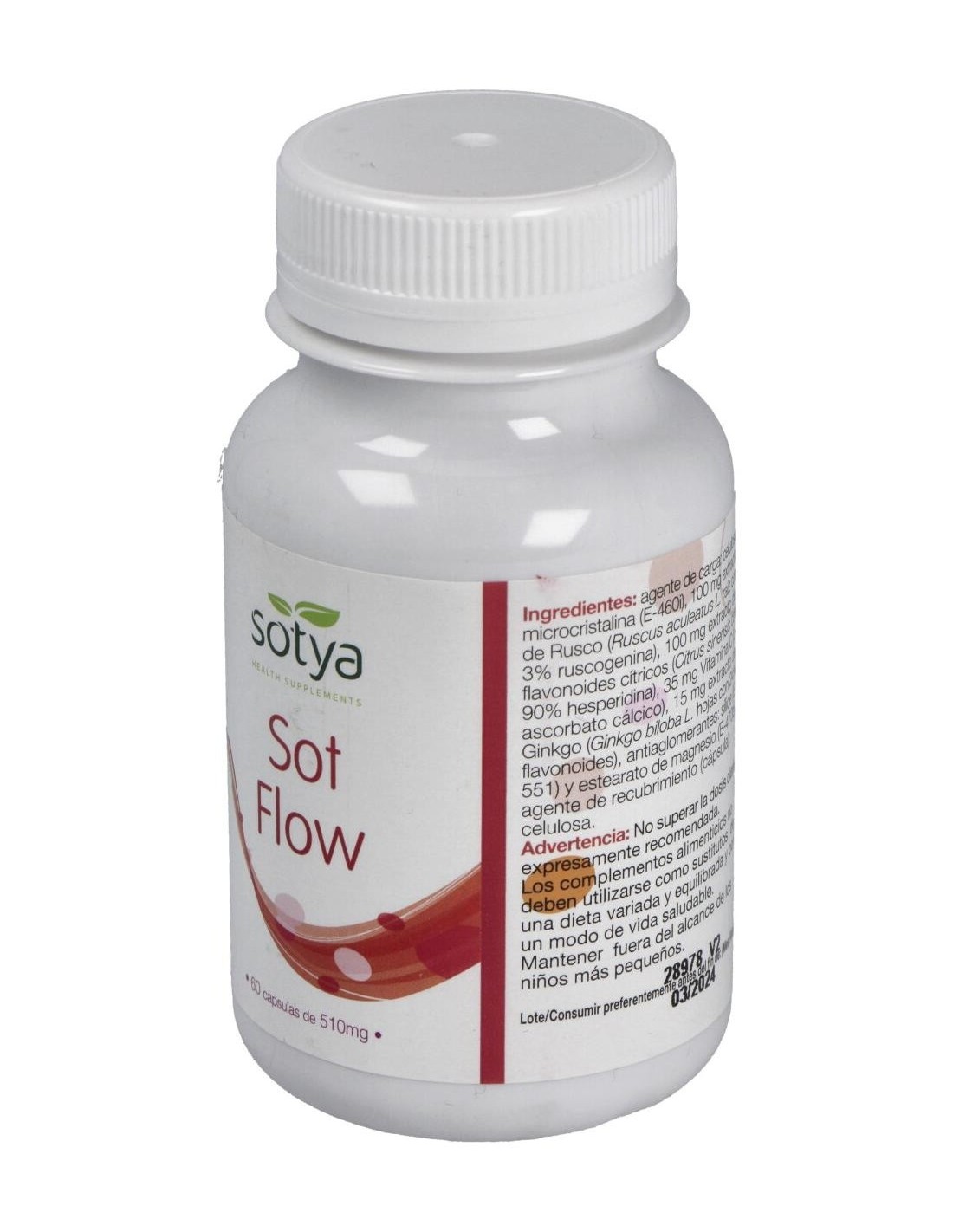 Sotya Sot-Flow es un complemento alimenticio compuesto por diferentes plantas con propiedades medicinales que actúan mayoritariamente sobre el sistema circulatorio, con lo que tiene un efecto vasoprotector y vasodilatador.