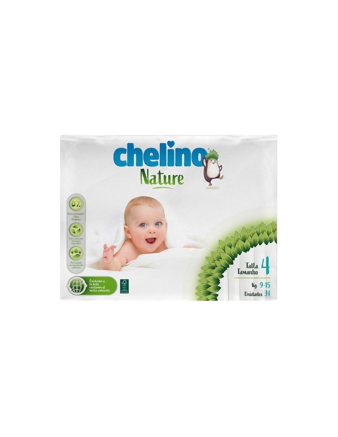 Pañales de Chelino para bebés que usen la talla 4. Este producto viene en un empaque de 36 unidades. Estos pañales son anatómicos, elaborados pensando en la delicada piel de los bebés. Ayudan a mantener la suavidad en su piel para que se sientan confortables, sin experimentar molestias ni impedimentos para realizar movimientos con sus piernas. Sus materiales protegen de la humedad gracias a las perlas superabsorbentes y la lámina blanca que hace circular la orina. Están libres de látex y de perfumes y, además, son antialérgicos. Han sido testados por especialistas dermatólogos y fabricados bajo criterios ecológicos con ingredientes naturales y de respeto al medio ambiente. Aunque son para bebés de talla 4, se recomienda usar una talla más o menos de acuerdo a lo que indica el empaque. No apto para tallas mayores.
