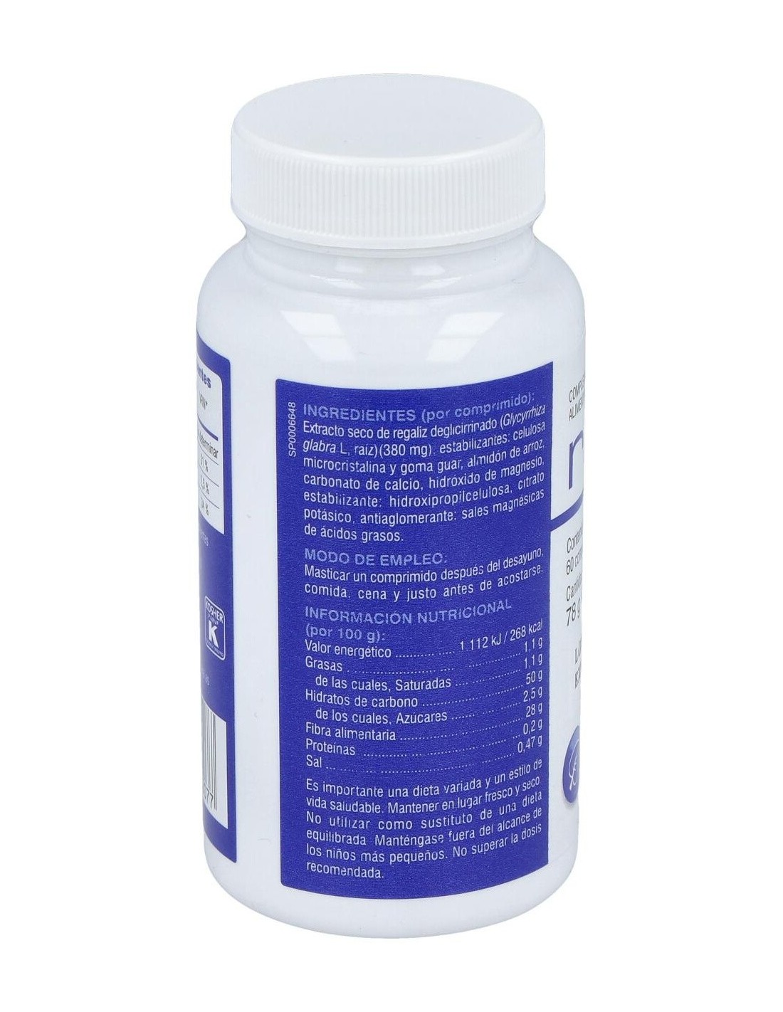 Extracto de regaliz deglicirrinado, jugo de patata deshidratado, carbonato cálcico, citrato potásico, hidróxido de magnesio, estabilizadores: celulosa microcristalina y goma guar, sal magnésica de ác grasos: estearato de magnesio.