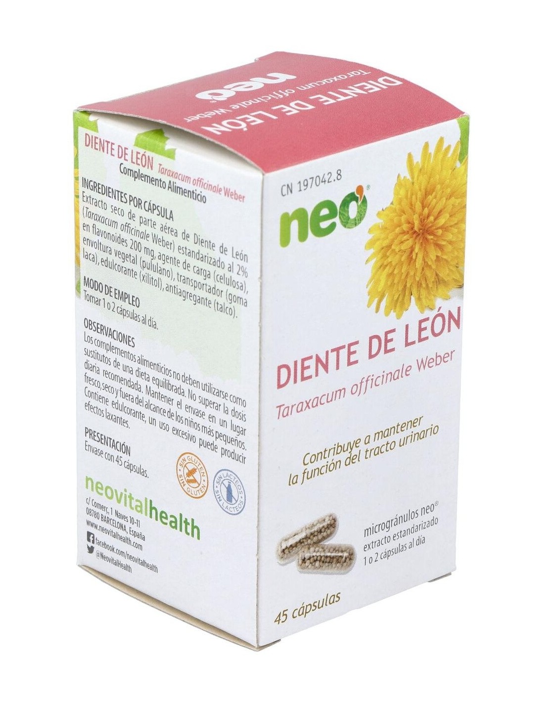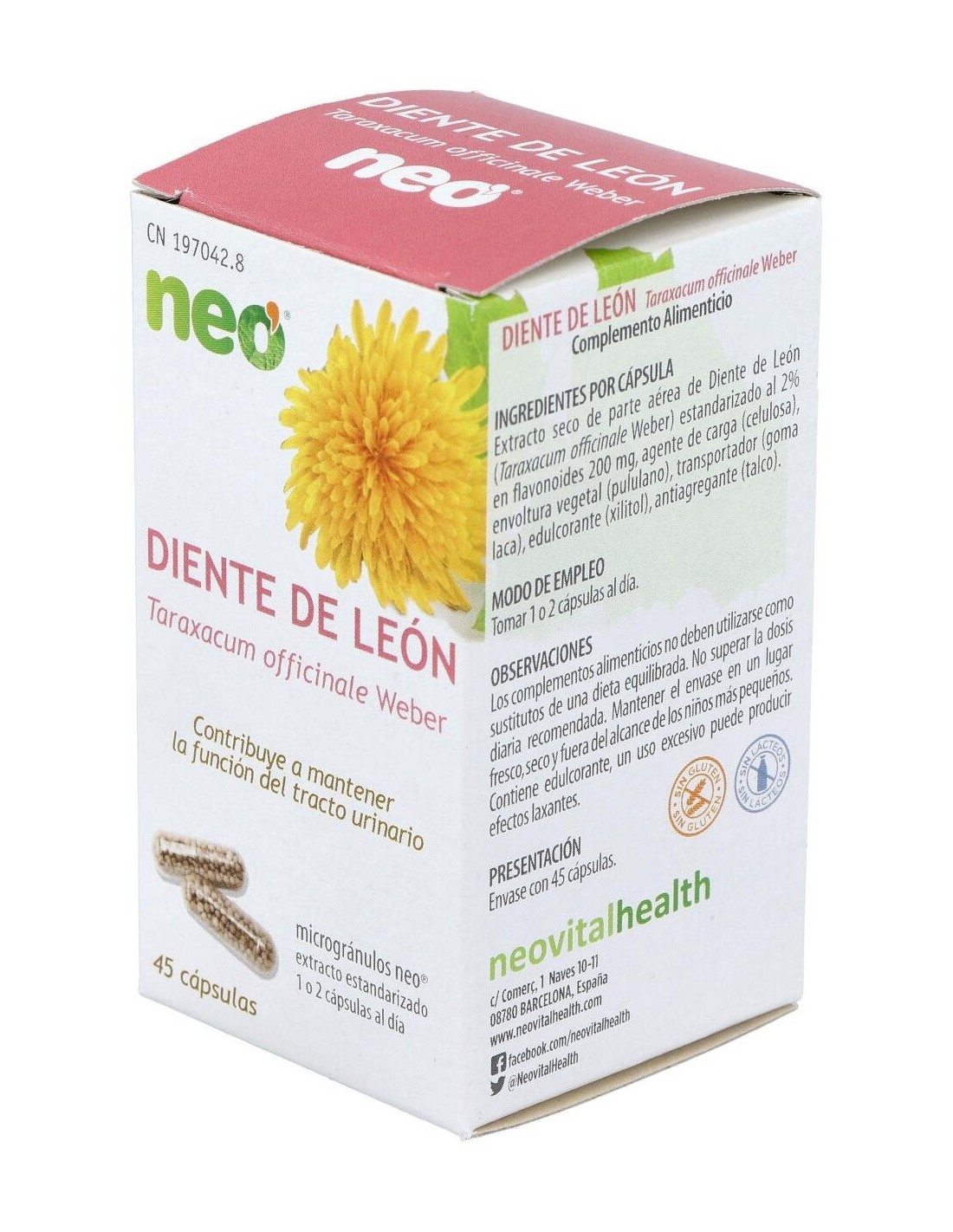 Neo Diente de león es un complemento alimenticio que ayuda a tratar los problemas biliares, hepatobiliares, diuresis o retención de líquidos de una forma natural y saludable. Elaborado con diente de león, cosneguirás grandes resultados en cuestión de pocos días.