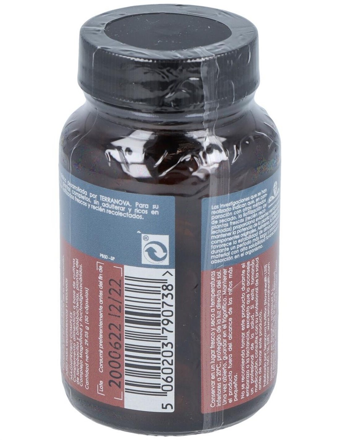 Complemento alimenticio a base de cultivos de lactobacilos y bifidobacterias, plantas del Complejo Magnifood y fructo-oligosacáridos. Apto para vegetarianos y veganos.