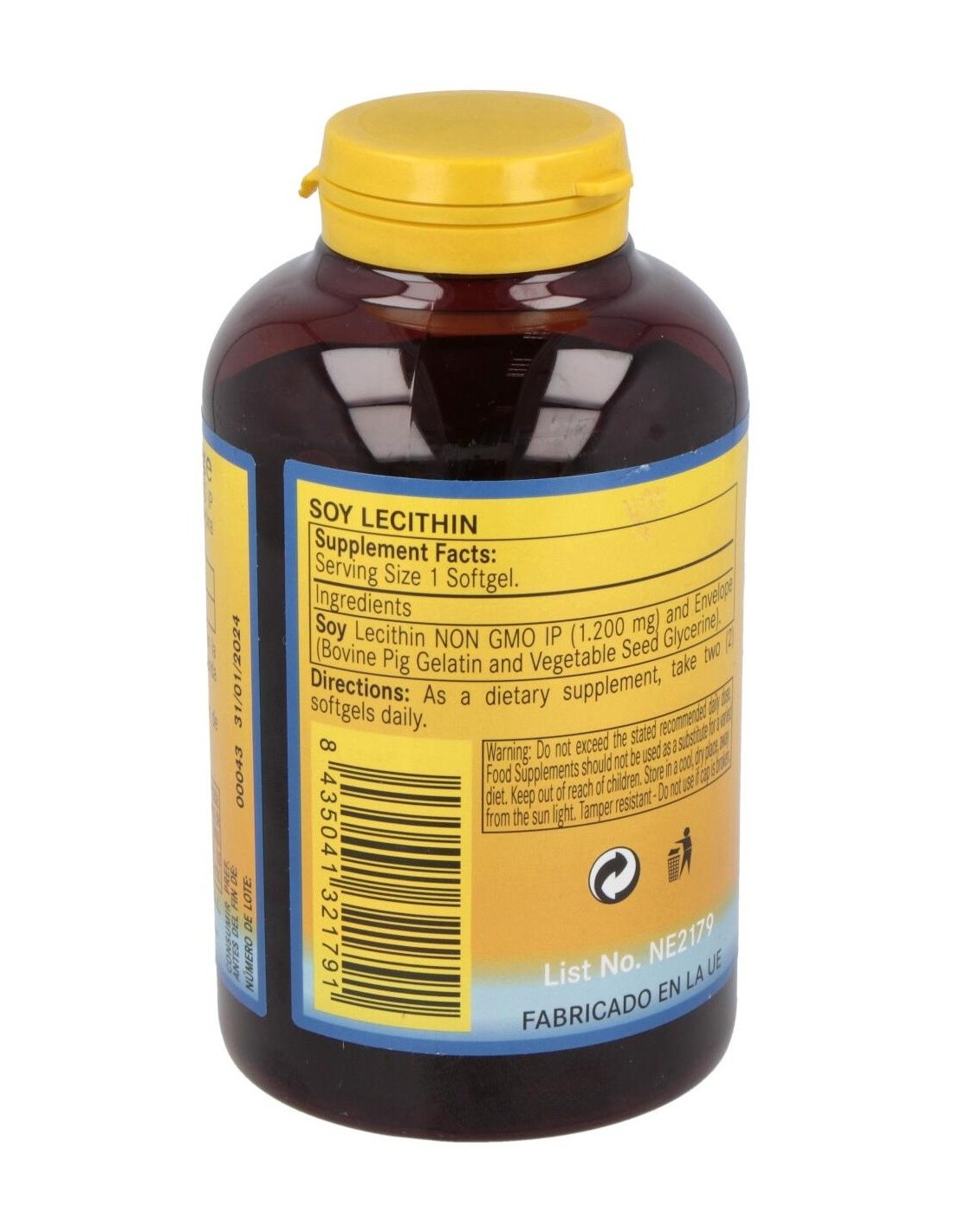 Suplemento alimenticio a base de lecitina de soja que ayuda a diluir el nivel de lípidos del organismo. Contribuye a mejorar la concentración y agiliza la memoria. También ayuda a prevenir las deficiencias circulatorias. Y ayuda a facilitar el buen funcionamiento de la circulación. Es ideal para el buen funcionamiento del hígado y los riñones. No recomendado para mujeres embarazadas o bien en periodo de lactancia.