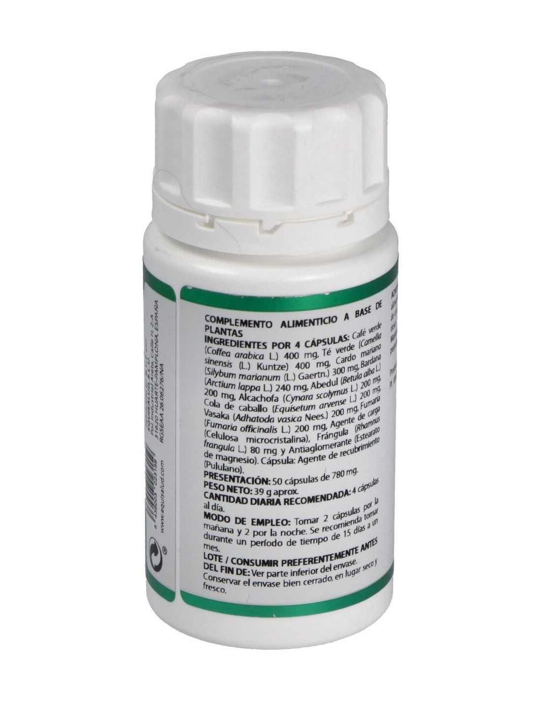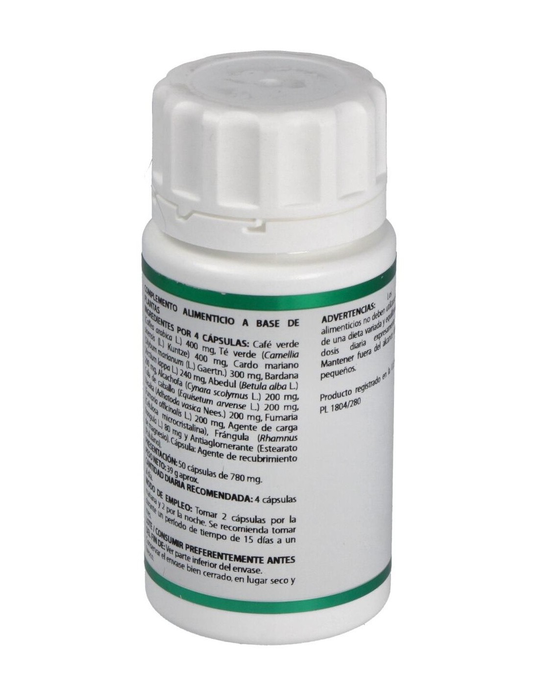 Café verde, Té verde, Cardo mariano, Bardana, Abedul, Alcachofa, Cola de caballo, Vasaka, Fumaria, Frángula. Envoltura de polisacárido de origen vegetal (pululano)