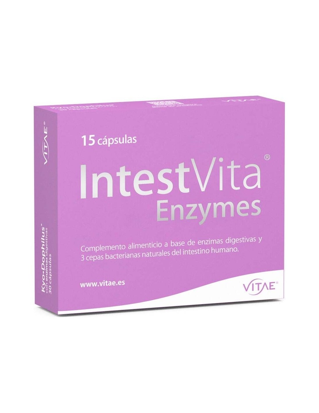Vitae IntestVita Enzymes 15caps es un complemento alimenticio a base de enzimas digestivas y 3 cepas bacterianas naturales del intestino humano.