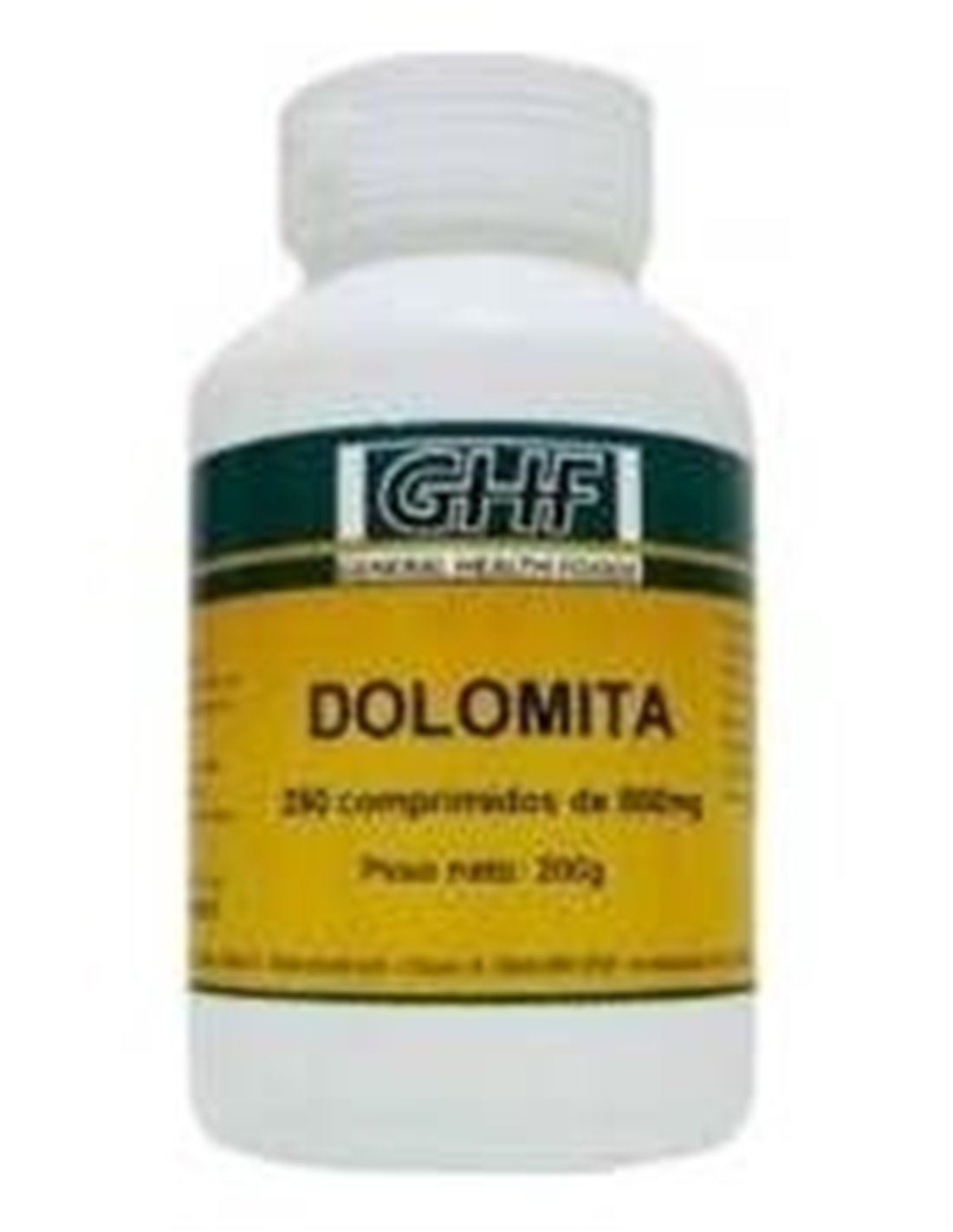 GHF Dolomita 800mg es un complemento alimenticio que te ayudará si padeces problemas óseos (como osteoporosis) o como medida preventiva. GHF Dolomita 800mg es un complemento ideal si tienes carencias de ambos elementos o atraviesas trastornos neuromusculares, temblores y convulsiones, problemas digestivos o cardiovasculares.