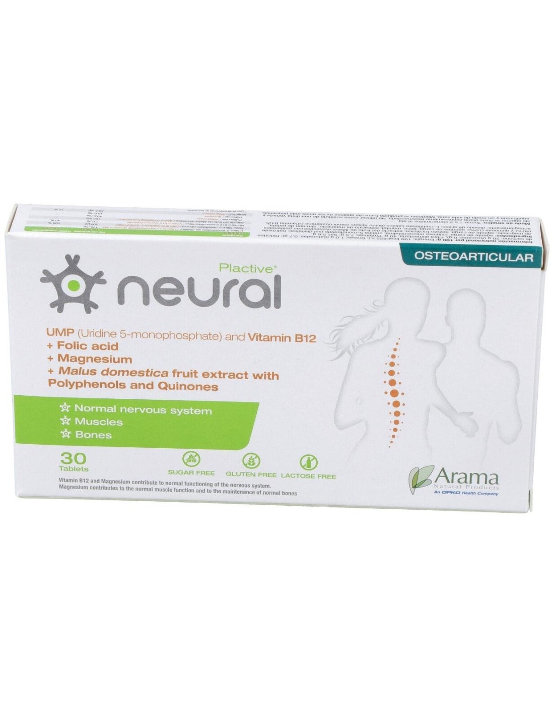 Arama Plactive Neural 30comp es un complemento alimenticio para el cuidado de la salud. Está diseñado para adultos, para contribuir al funcionamiento normal del sistema nervioso, los músculos y los huesos.
