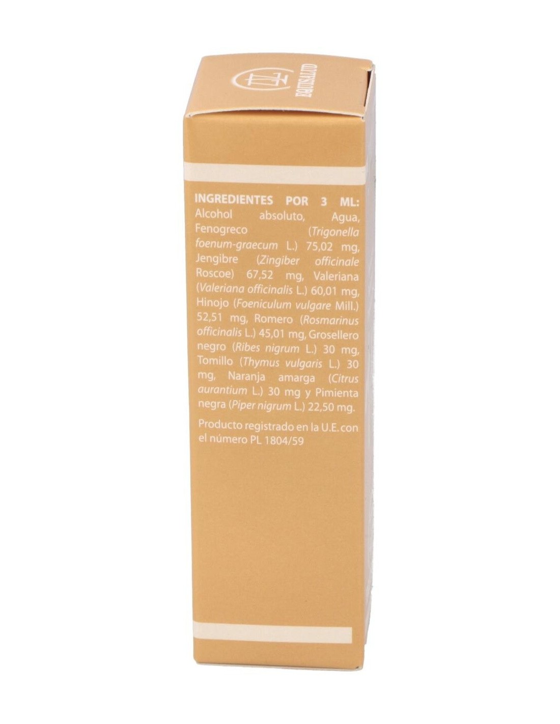 FENOGRECO, JENGIBRE, VALERIANA, HINOJO, ROMERO, GROSELLERO NEGRO, TOMILLO, NARANJA AMARGA, PIMIENTA NEGRA.