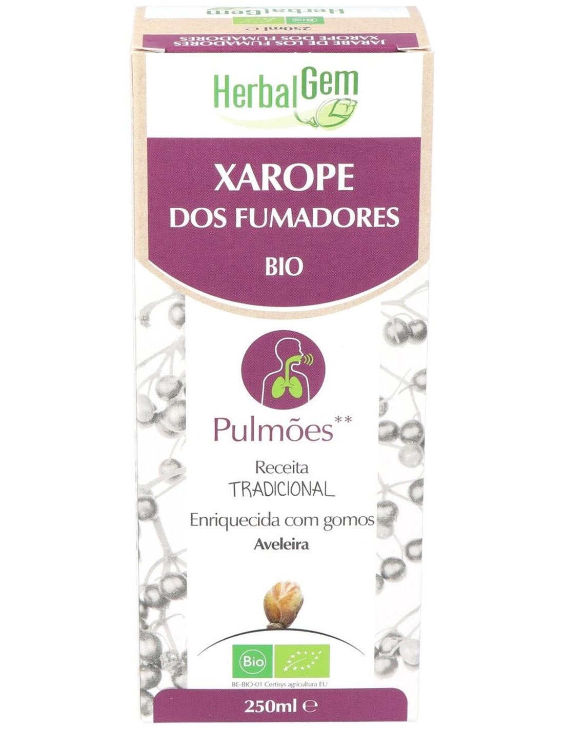 Herbalgem Jarabe de los Fumadores 250ml es un jarabe biológico que ayuda a limpiar las vías respiratorias y los pulmones de fumadores o exfumadores, además de acabar con la tos.