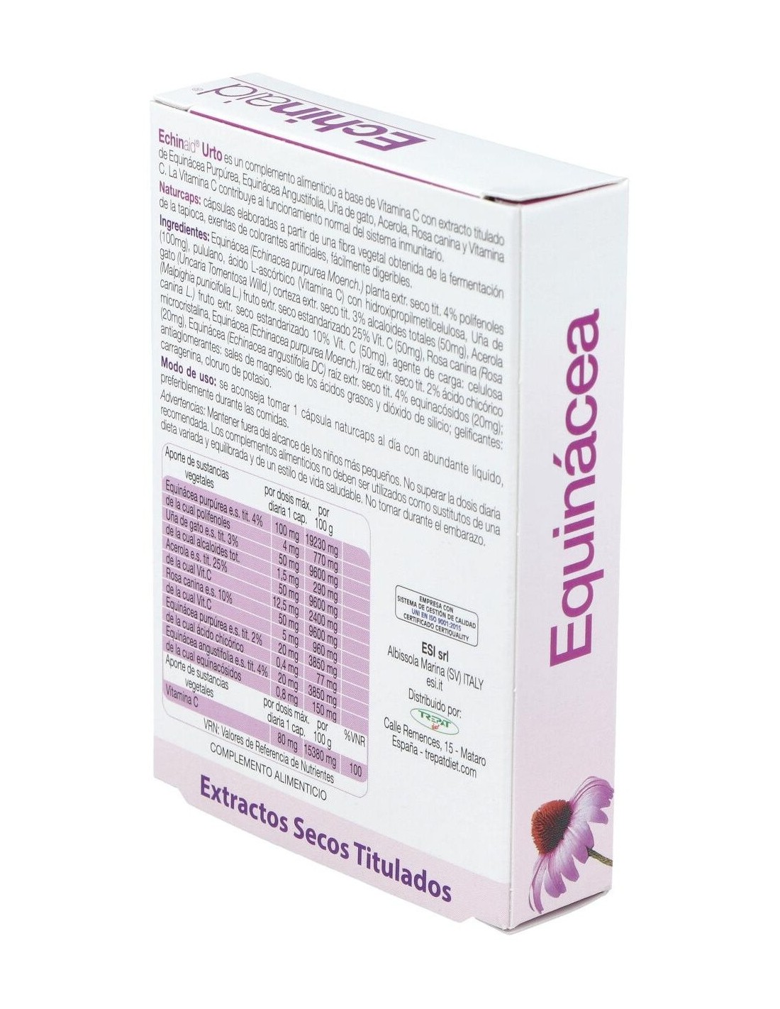 ECHINACEA PURPUREA, VITAMINA C, UÑA DE GATO CORTEZA, ACEROLA FRUTO, ROSA CANINA FRUTO, ECHINACEA PURPUREA, ECHINACEA ANGUSTIFOLIA.