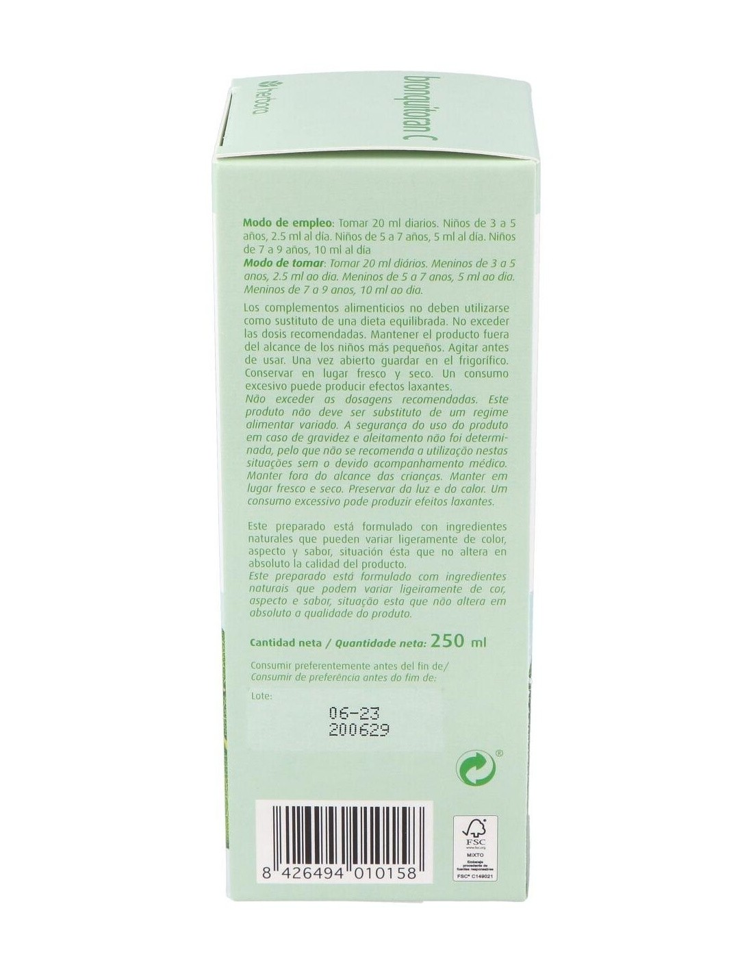 Jarabe a base de extractos naturales de plantas como menta, saúco, tomillo, hinojo o eucalipto que trabajan en sinergia para aportar propiedades suavizantes, beneficiosas para gargantas irritadas y expectorantes que favorecen la eliminación y fluidificación de los mocos. Está enriquecido con vitamina C que reduce el riesgo de contraer infecciones ya que refuerza el sistema inmunitario.