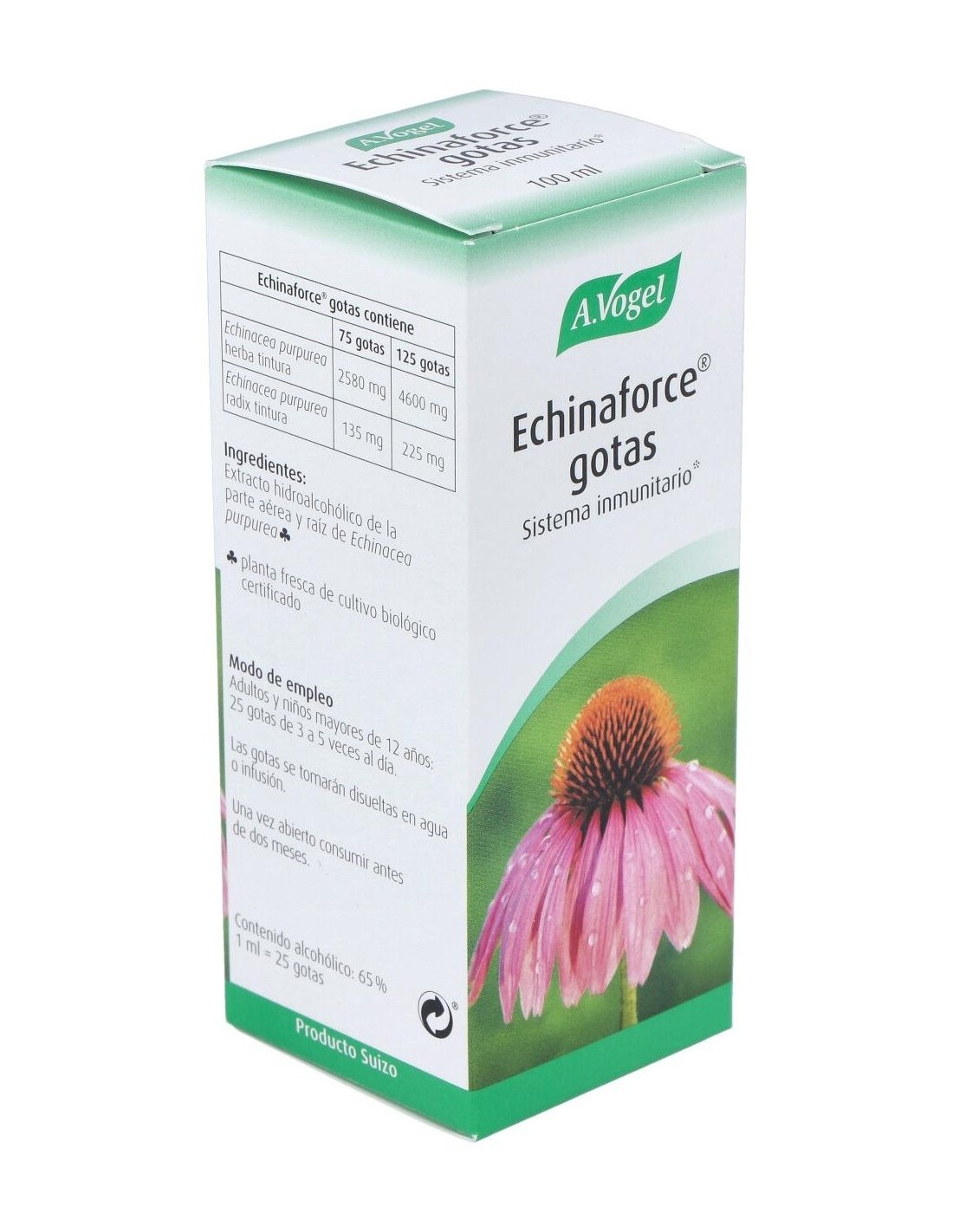 Contribuye a la función adecuada del sistema inmunitario del organismo por su contenido en Echinacea purpurea. Apto para veganos.