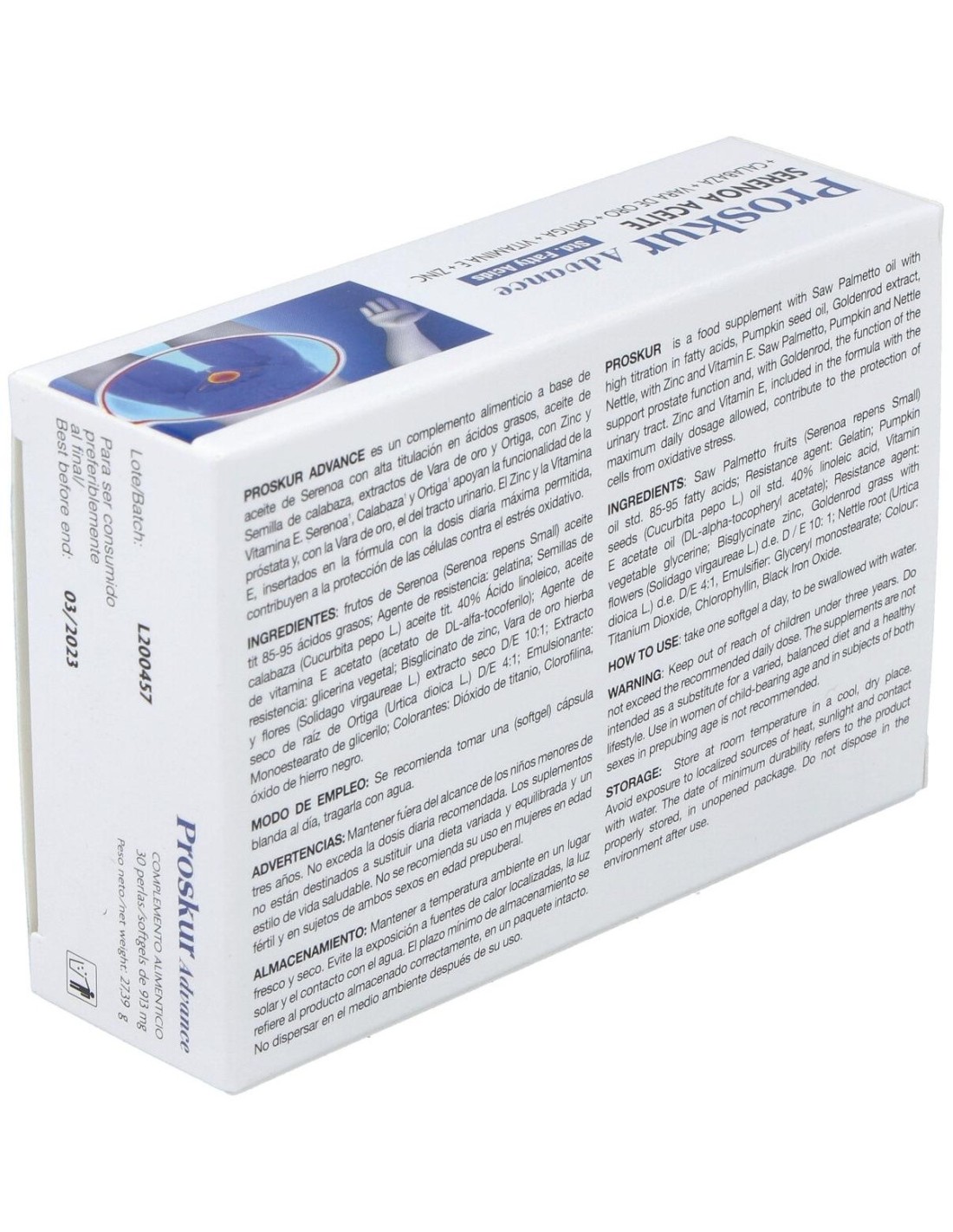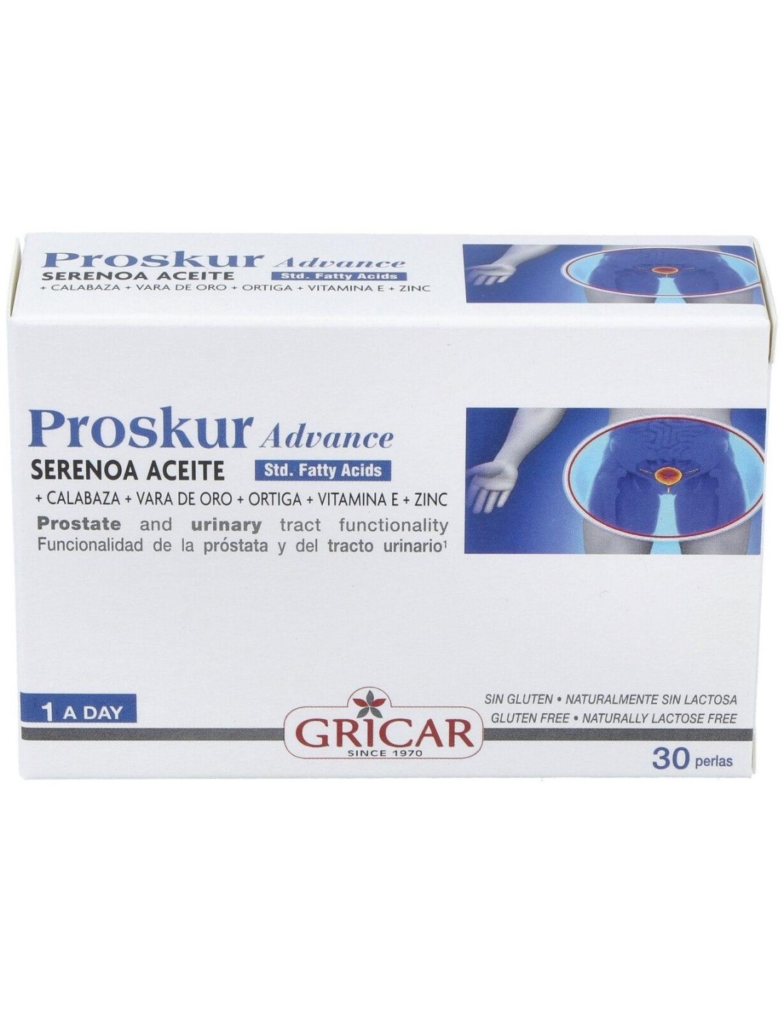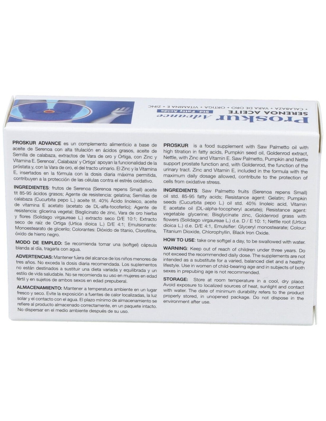 Complemento alimenticio elaborado a base de vitamina E, zinc y extractos vegetales de sabal, trébol, calabaza, ortiga y vara de oro. La Vitamina E y el Zinc contribuyen a la protección de las células frente al daño oxidativo. El Zinc contribuye al mantenimiento de niveles normales de testosterona