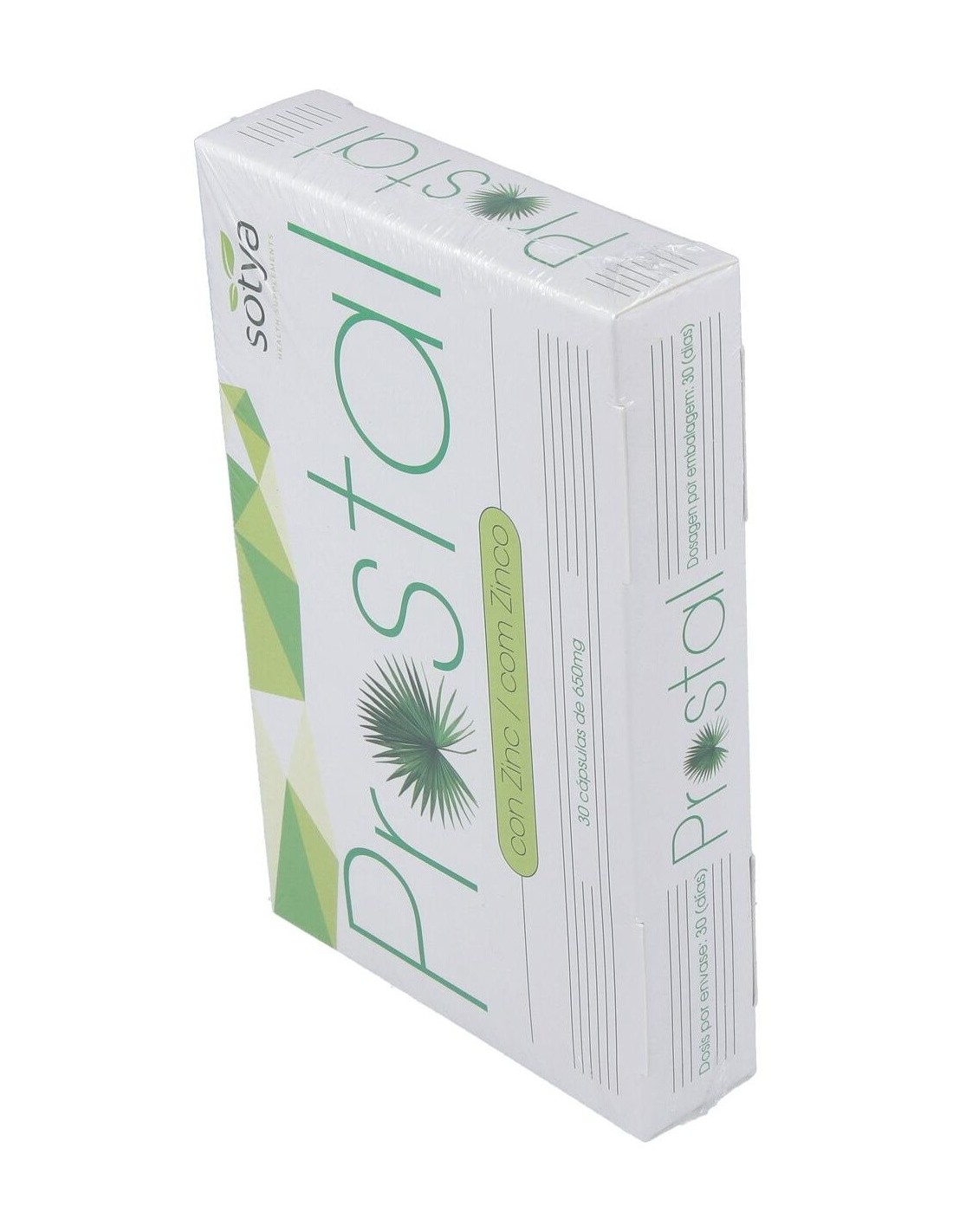 Sotya Prostal 550mg es un complemento alimenticio rico en Saw Palmetto, una planta cuyo fruto sirve para tratar la inflamación de próstata. El Saw Palmetto reduce las ganas de orinar y la excreción se hace menos difícil.