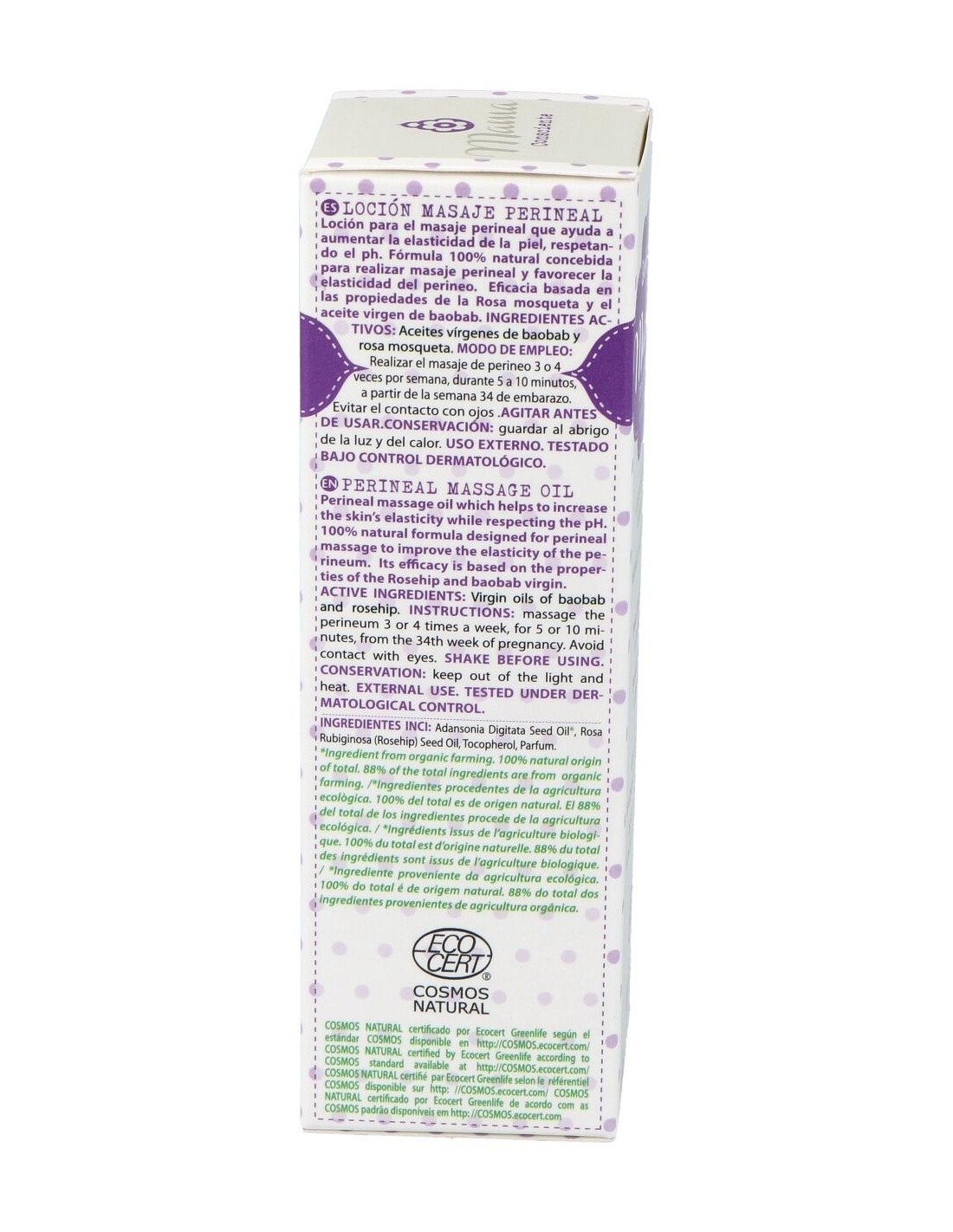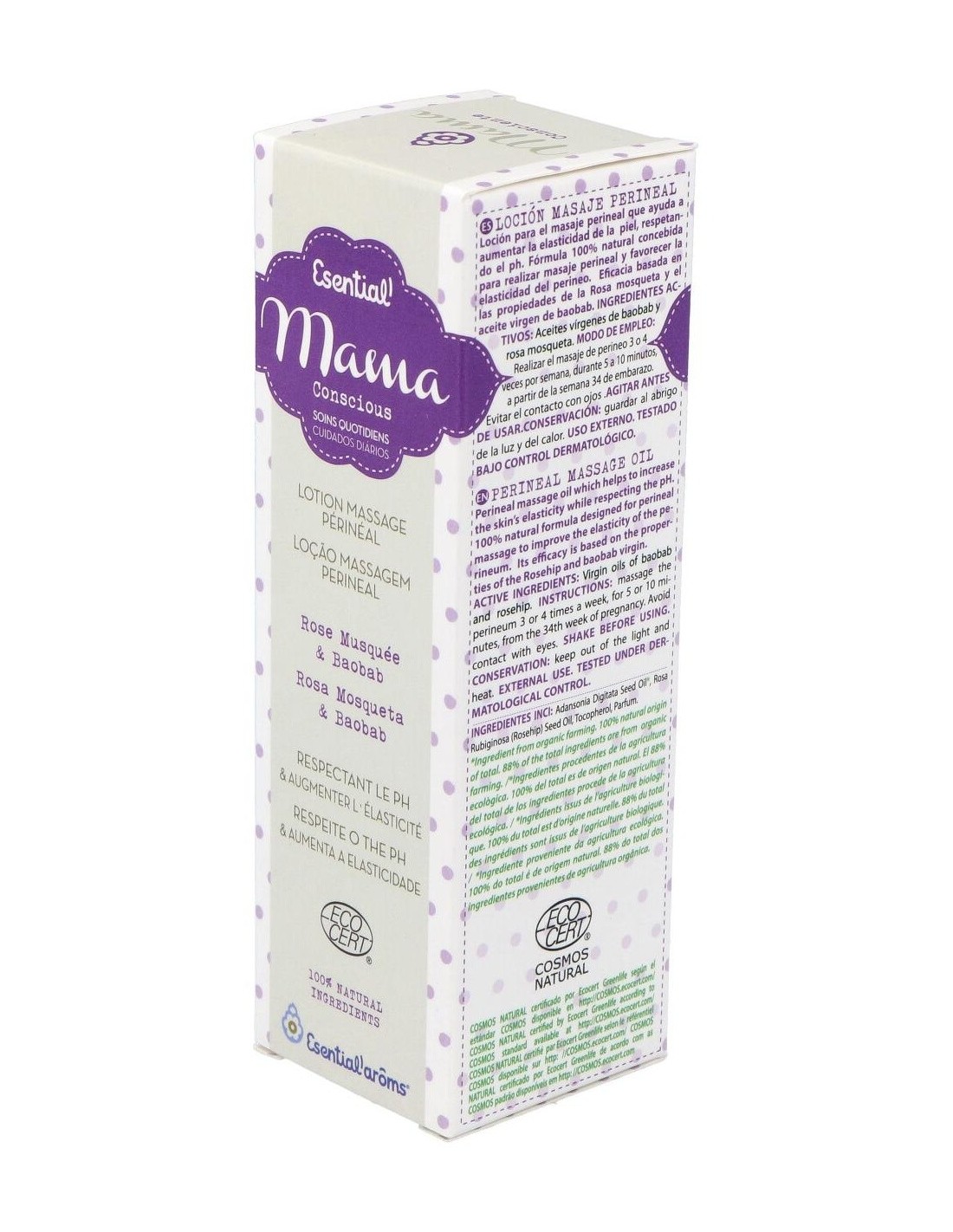 Fórmula 100% natural concebida para realizar masaje perineal y favorecer la elasticidad del perineo. Eficacia basada en las propiedades de la rosa mosqueta y el aceite virgen de baobab. Recomendado para embarazadas a partir de la semana 34.
