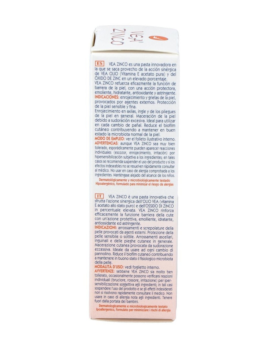 La pasta protectora Vea Zinco es perfecta para restaurar la piel dañada o irritada por culpa de cualquier agente externo (calor, frío...). Indicada, sobre todo, para las zonas de axilas, inglés o para el culito del bebé. ¡Un tratamiento hipoalergénico que calma intensamente el picor y repara la zona afectada hasta que se normaliza tu textura!. Enriquecida con vitamina E y óxido de Zinc, dos componentes reparadores que refuerzan la función de barrera en la piel y equilibran su pH.