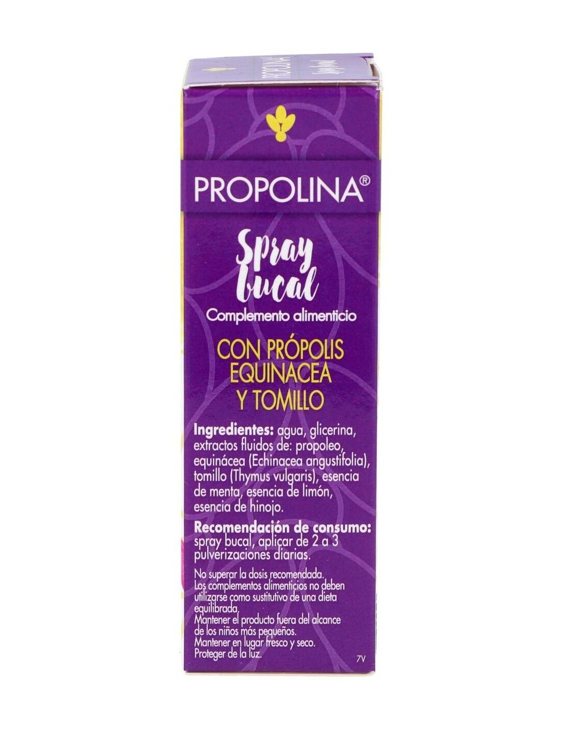 Complemento alimenticio presentado en formato spray que ayuda a aliviar el dolor y escozor en caso de dificultad al tragar la saliva. Está compuesto con propóleo y extractos vegetales. Cuida la garganta y las vías respiratorias. Contribuye en tratar de mejorar las defensas y ayudar a conseguir una buena salud. No se han empleado productos químicos ni artificiales.