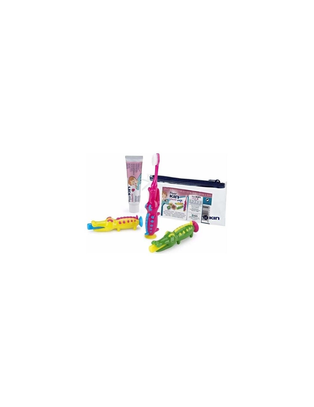1 Cepillo Viaje coche + Pasta dentífrica FluorKIN Infantil 25 ml en neceser.