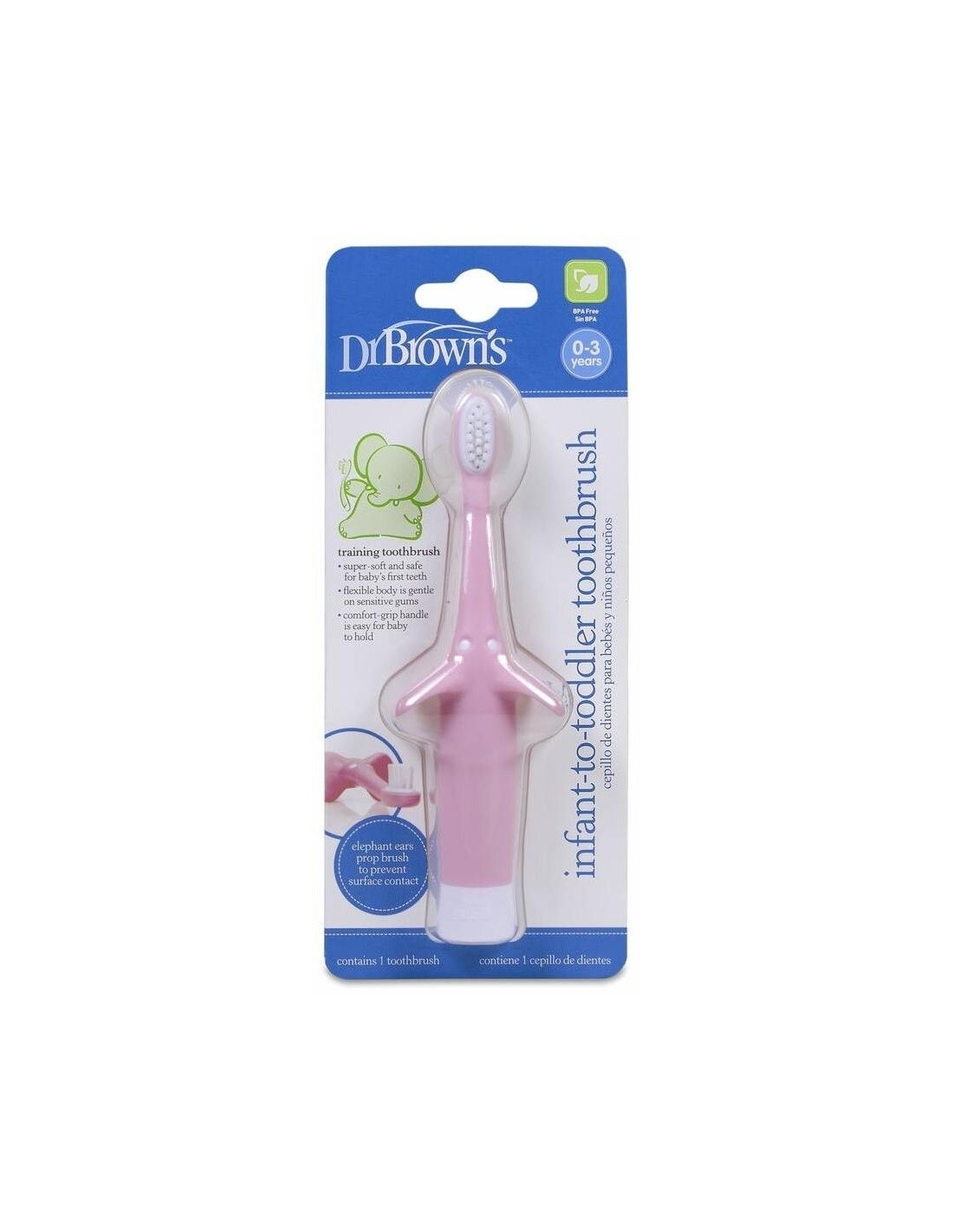 DR. BROWN´SSus filamentos limpian suavemente y en profundidad, manteniendo la salud de su boca desde que nace. Su forma anatómica evita que entre en contacto con la superficie manteniéndolo siempre limpio. El mango, de muy fácil agarre, está adaptado a las manitas pequeñas del bebé, ayudándole a crear buenos hábitos de higiene. \ \ *El color y/o diseño del producto puede variar.