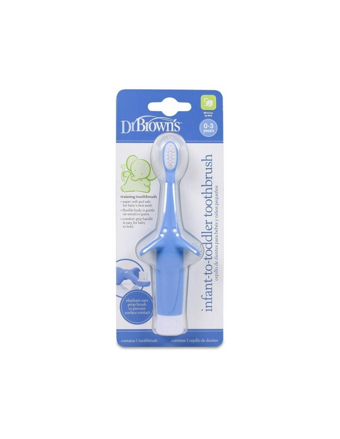 DR. BROWN´SSus filamentos limpian suavemente y en profundidad, manteniendo la salud de su boca desde que nace. Su forma anatómica evita que entre en contacto con la superficie manteniéndolo siempre limpio. El mango, de muy fácil agarre, está adaptado a las manitas pequeñas del bebé, ayudándole a crear buenos hábitos de higiene.\ \ *El color y/o diseño del producto puede variar.