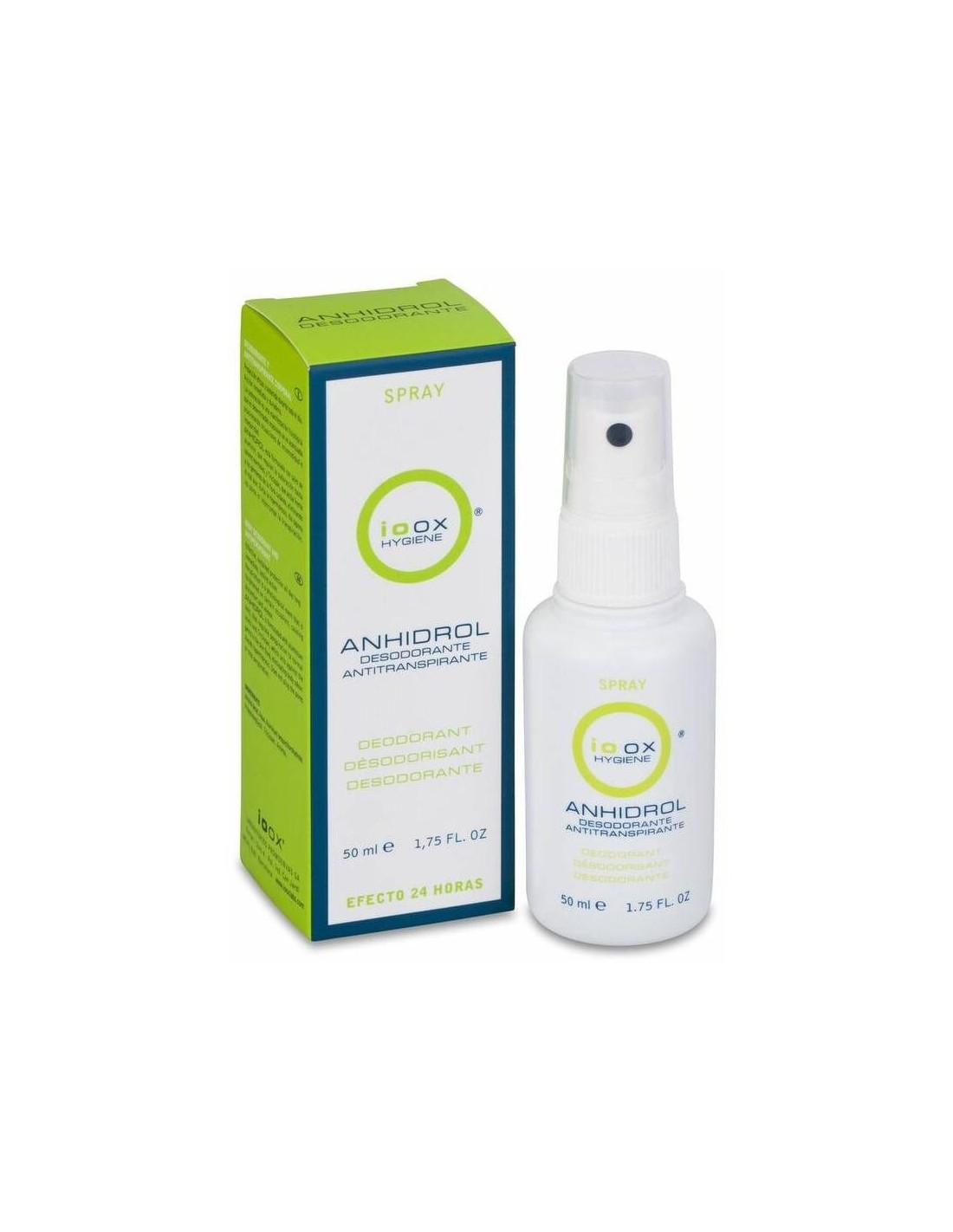 Para las personas que tengan problemas de exceso de sudoración, el desodorante en spray de Ioox es una ayuda muy efectiva. Se trata de un desodorante antitranspirante que contiene un 18 % de Clorhidrato de Aluminio que cierra parcialmente los poros contribuyendo a mejorar los problemas de hiperhidrosis. También incluye triclosan, que actúa sobre las bacterias presentes en el sudor previniendo la aparición de olores. El desodorante en spray no contiene gases perjudiciales para la capa de ozono. No es conveniente depilarse las axilas en los dos días posteriores a su utilización.
