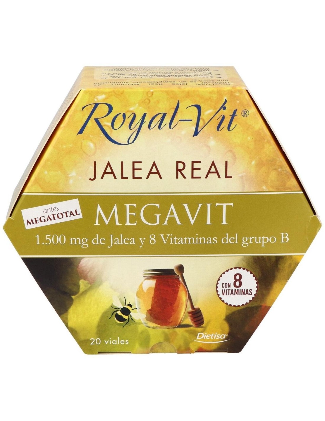 Dietisa jalea real royalvit mega-total es un complemento alimenticio que combate el cansacio y la fatiga. Gracias a su formulación ayuda a disminuir la fatiga y favorece un metabolismo energético normal.