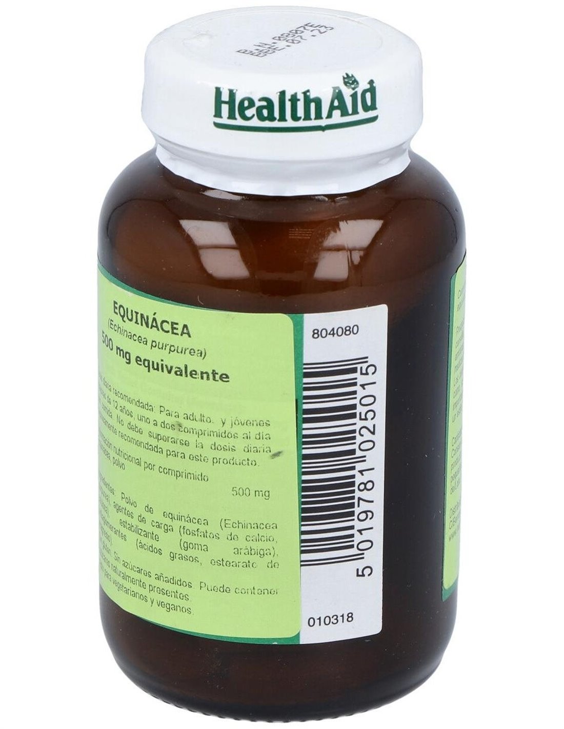 Complemento alimenticio a base de una combinación de Equináceas 500 mg 60 Tabletas Health Aid. La equinácea es una planta medicinal que se cultiva en el norte de América. La planta ayuda a curar heridas de cualquier tipo, además de aliviar problemas de salud. La Combinación de Equináceas ayuda a desarrollar el sistema inmune en la persona.