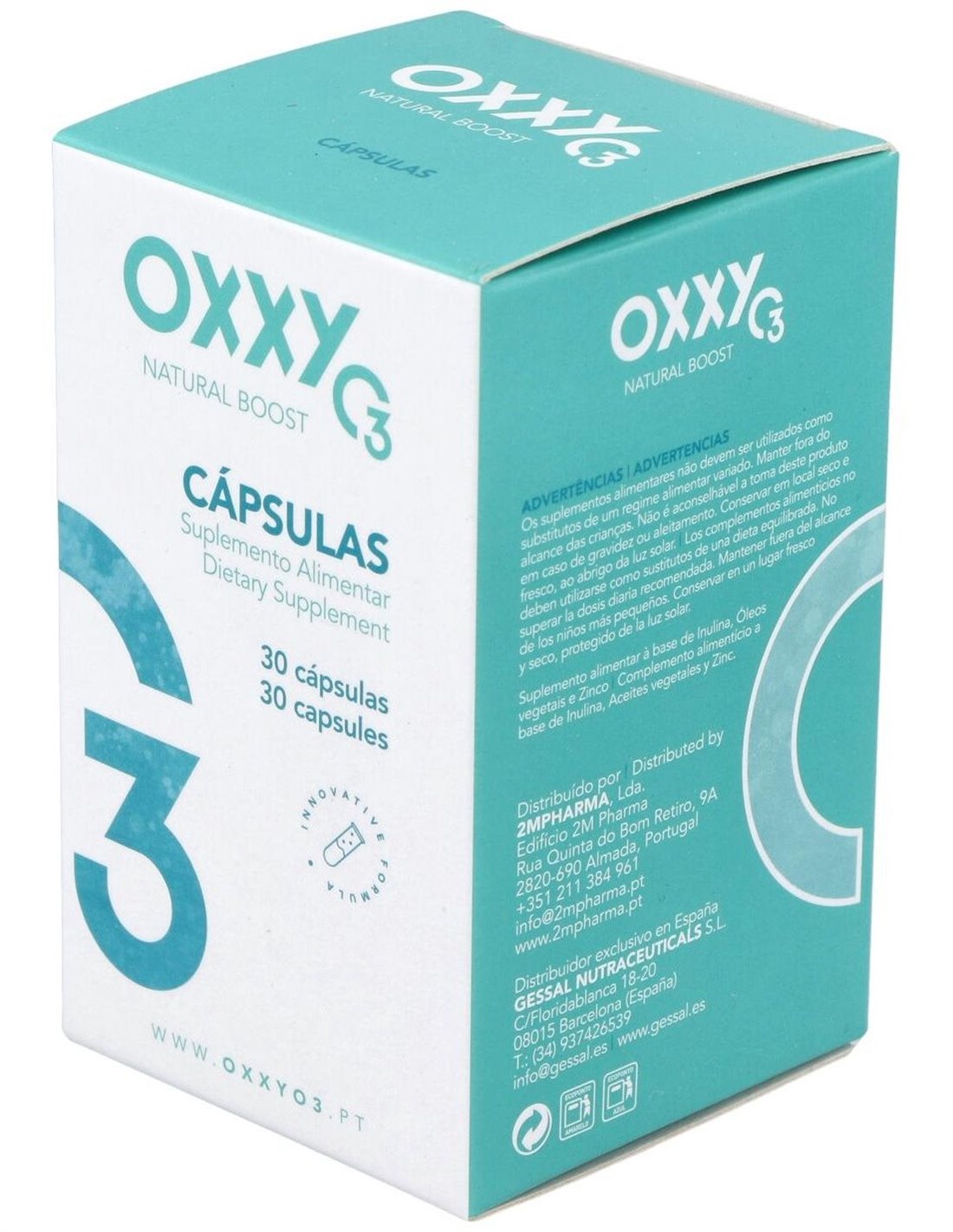 Actibios Oxxy O3 30caps complemento alimenticio 100% natural, destinado a promover la salud y el bienestar general. contiene una composición sinérgica de sus componentes que lo hacen único en su formulación. producto completamente microencapsulado en beta-ciclodextrina (ciclohepta mimosa hidrolizada), lo que permite la administración oral de ozono (o3) mediante cápsulas y/o ampollas se traduce en beneficios importantes sobre diversos sistemas y la piel. acción revitalizante, oxigenante, regenerador tejidos, sistema inmune, modula inflamaciones. acción sobre el colágeno y elastina. el ozono actúa sobre bacterias y virus que pueden provocan alteraciones.