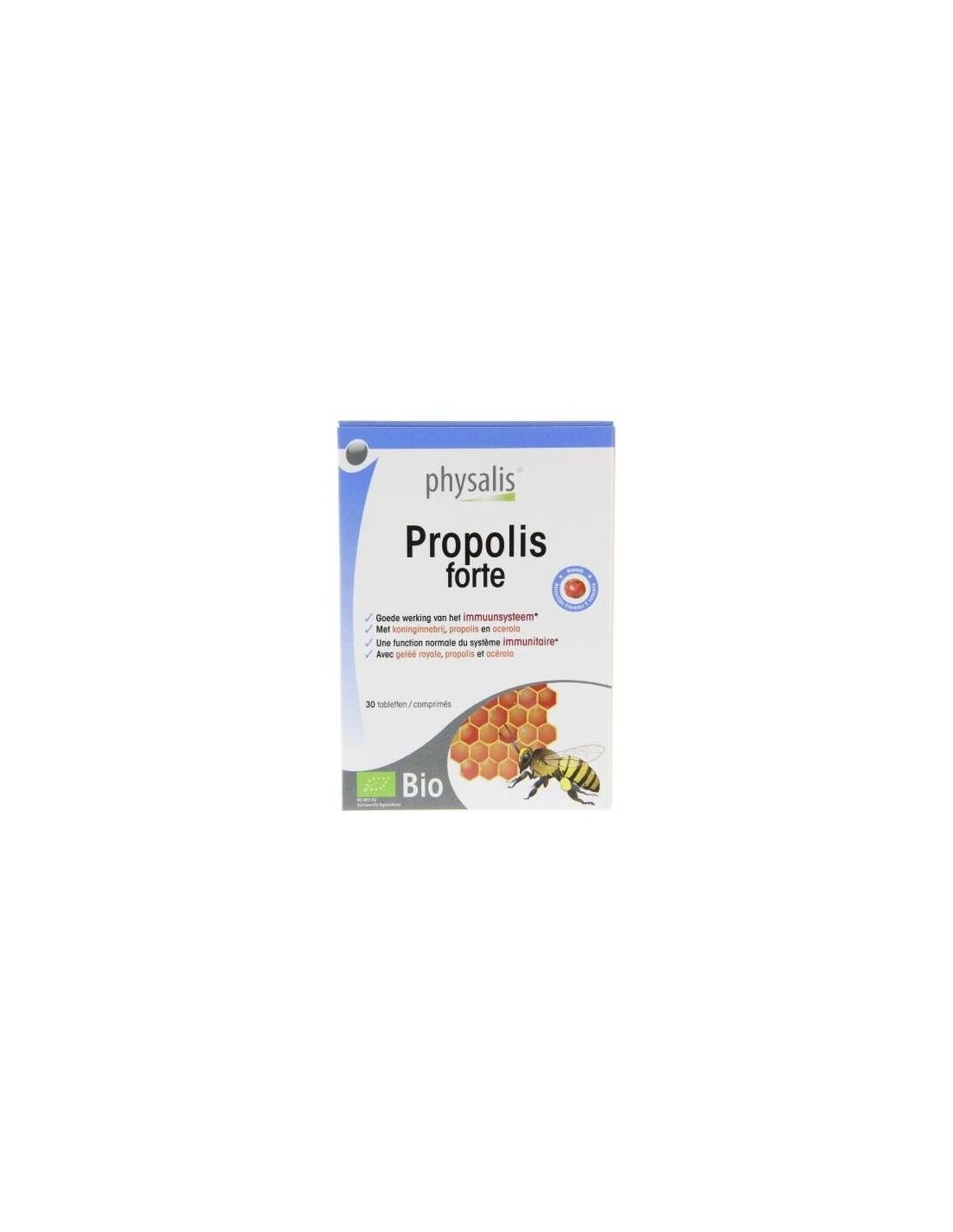 Extracto de Própolis. (600 mg), Jalea real bio (500 mg), Vitamina C (80 mg).
