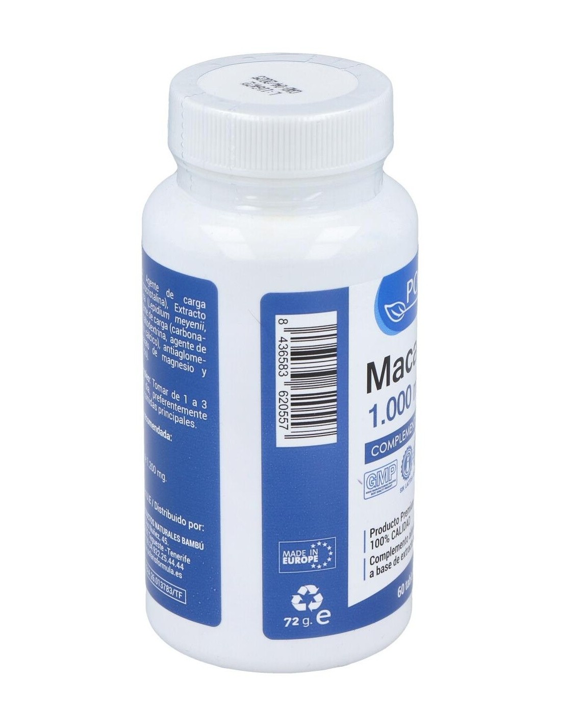 Agente De Carga (Celulosa Microcristalina), Extracto Seco De Maca (Lepidium Meyenii, -Raíz-) 4:1, Agente De Carga (Carbonato Cálcico), Maltodextrina, Agente De Carga (Fosfato Cálcico), Antiaglomerantes (Estearato De Magnesio y Dióxido De Silicio).