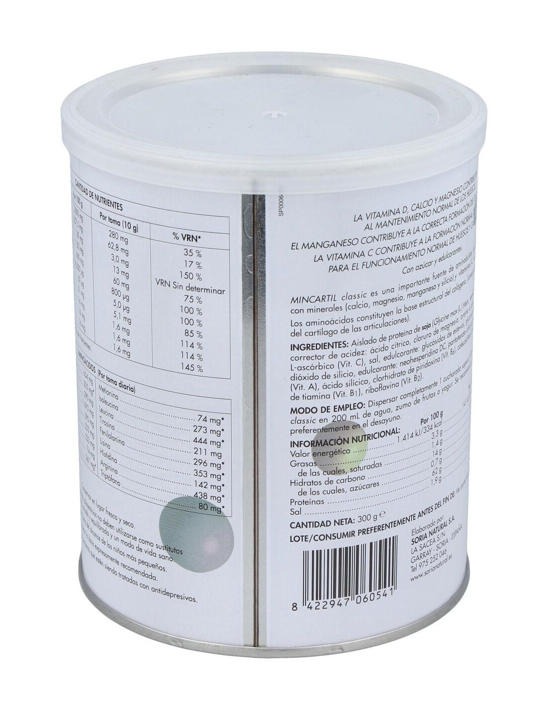 Dispersar completamente 1 cucharada sopera (10 g) de Mincartil Classic en un vasito de agua, zumo de frutas o yogur. Se recomienda 1 toma al día, preferentemente en el desayuno.